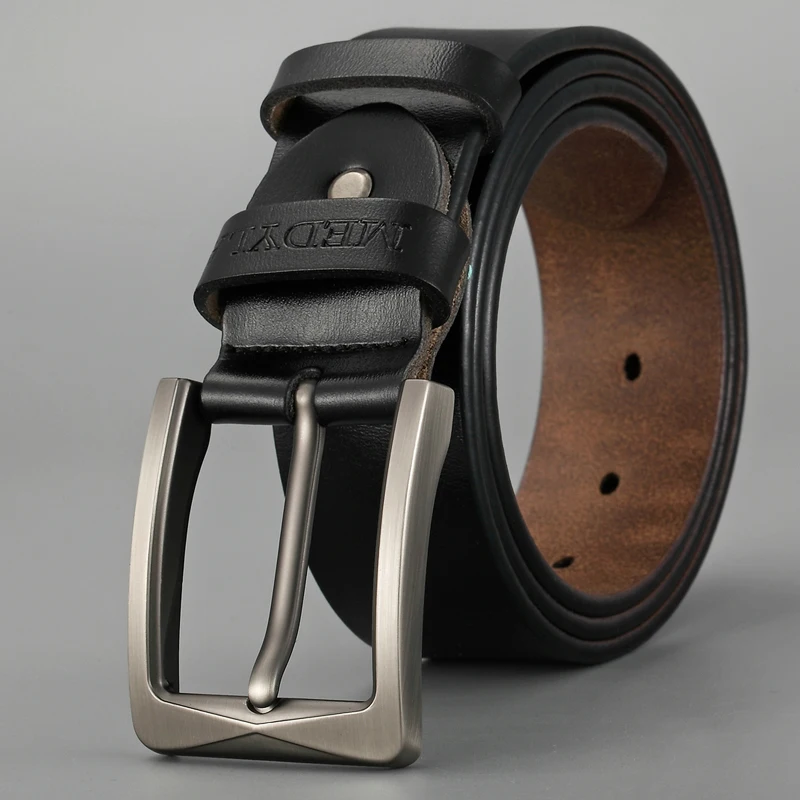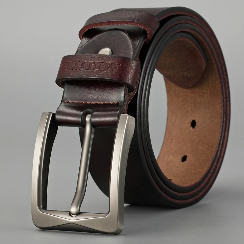 Мужской ремень из натуральной кожи с металлическим сплавом и шпилькой