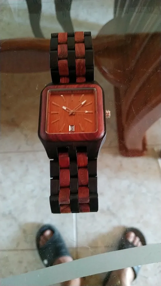 Красное сандаловое дерево, мужские часы, уникальный прямоугольник, циферблат, светильник, мужские часы, полностью натуральный древесный браслет с календарем, дата, кварцевые наручные часы