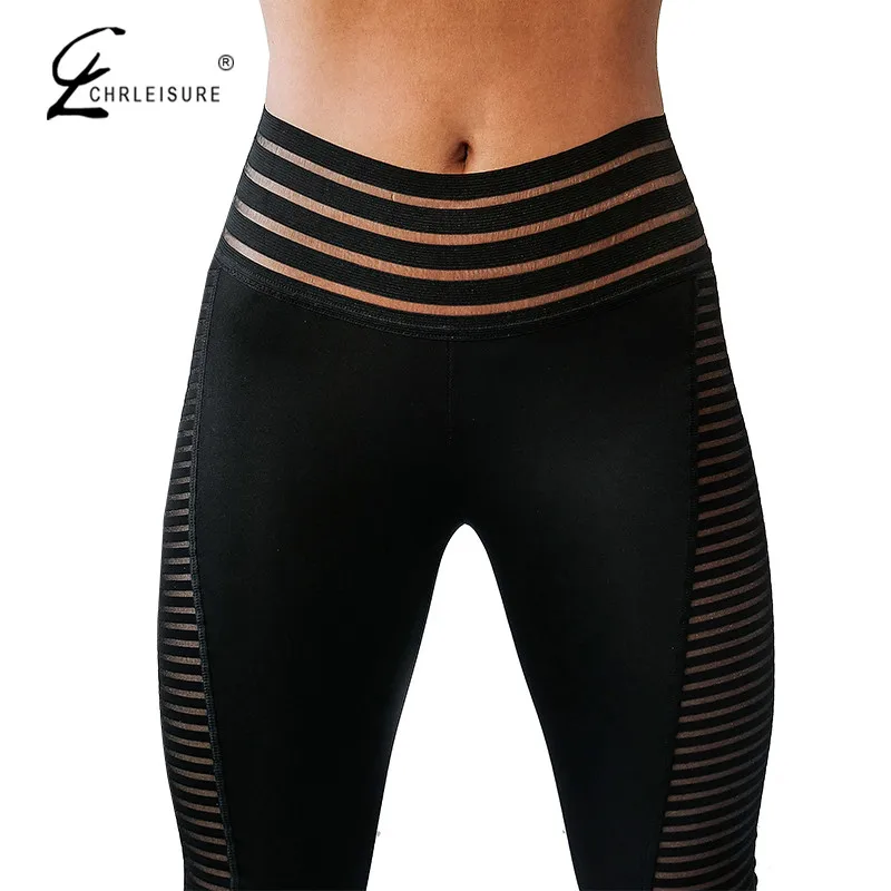 женщины с высокой талией фитнеса леггинсы CHRLEISURE спортивный, сетчатыми,полиэстера,стрейч