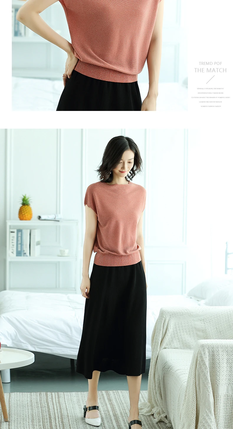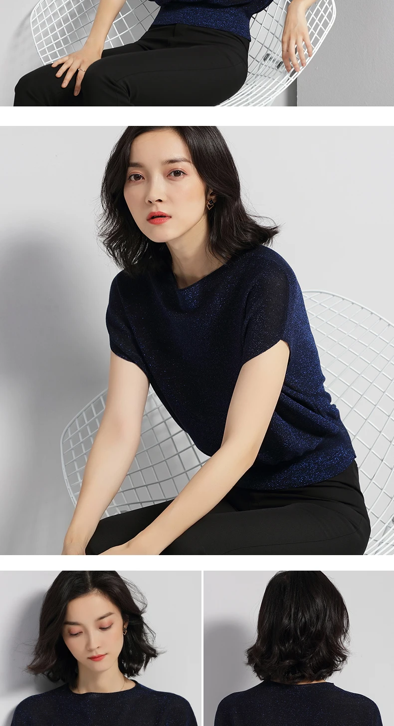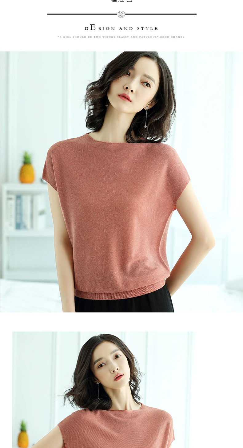 Женские свитера, кашемировый свитер, женский свободный яркий Шелковый вязаный пуловер, женский свитер с коротким рукавом, весенне-летние топы, женский свитер