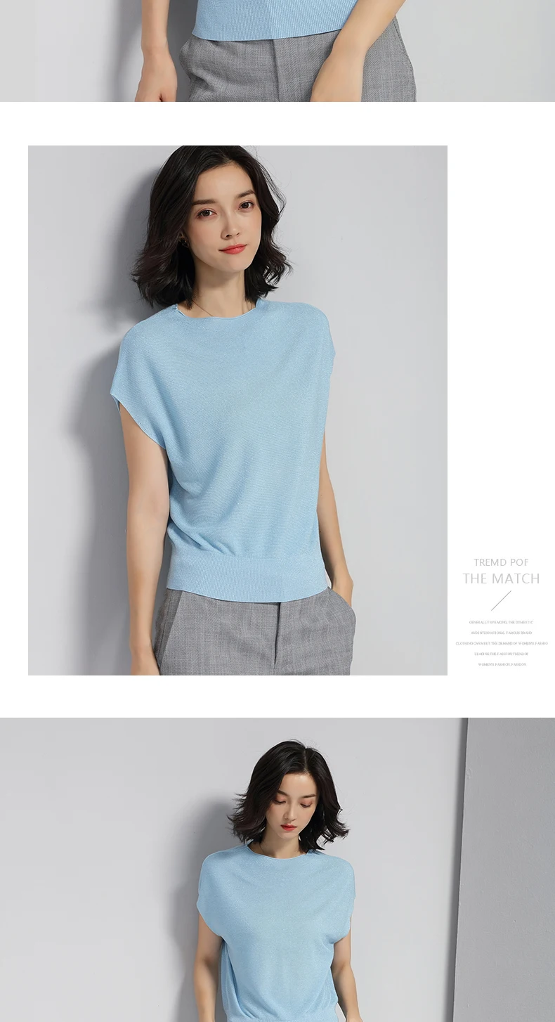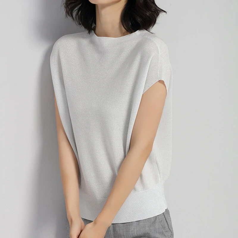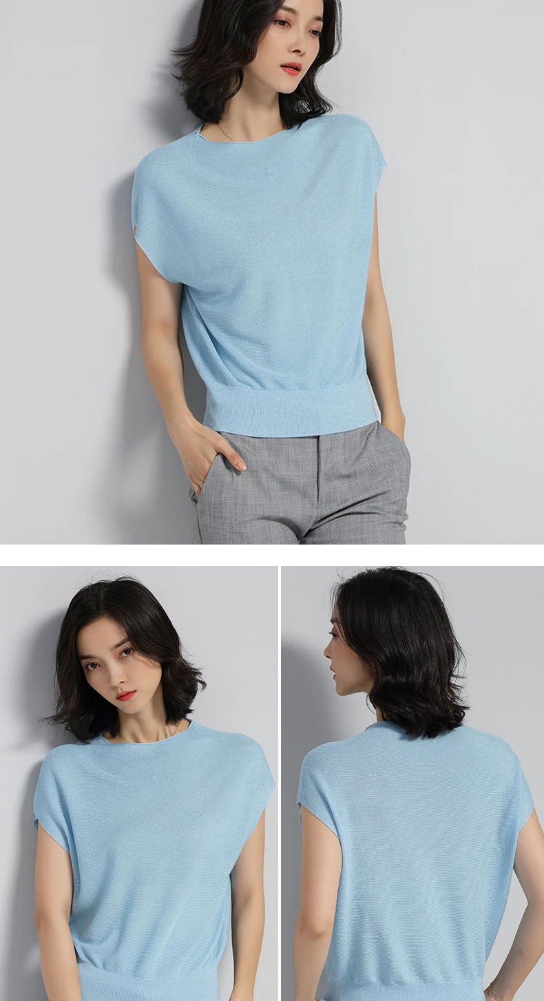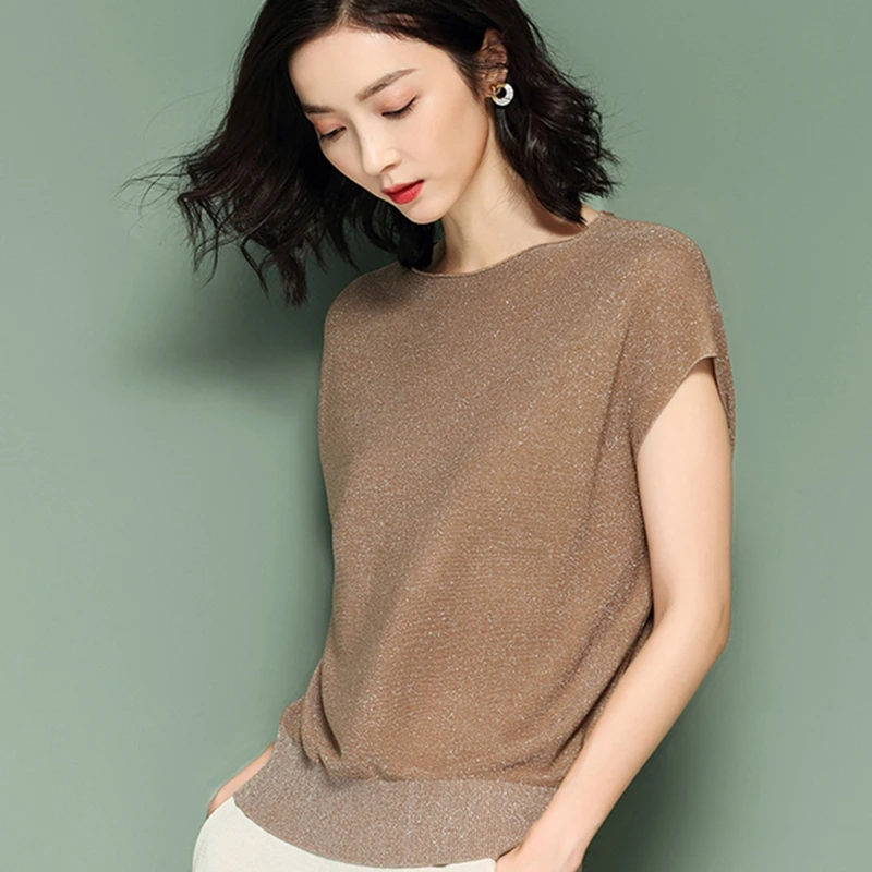 Женские свитера, кашемировый свитер, женский свободный яркий Шелковый вязаный пуловер, женский свитер с коротким рукавом, весенне-летние топы, женский свитер