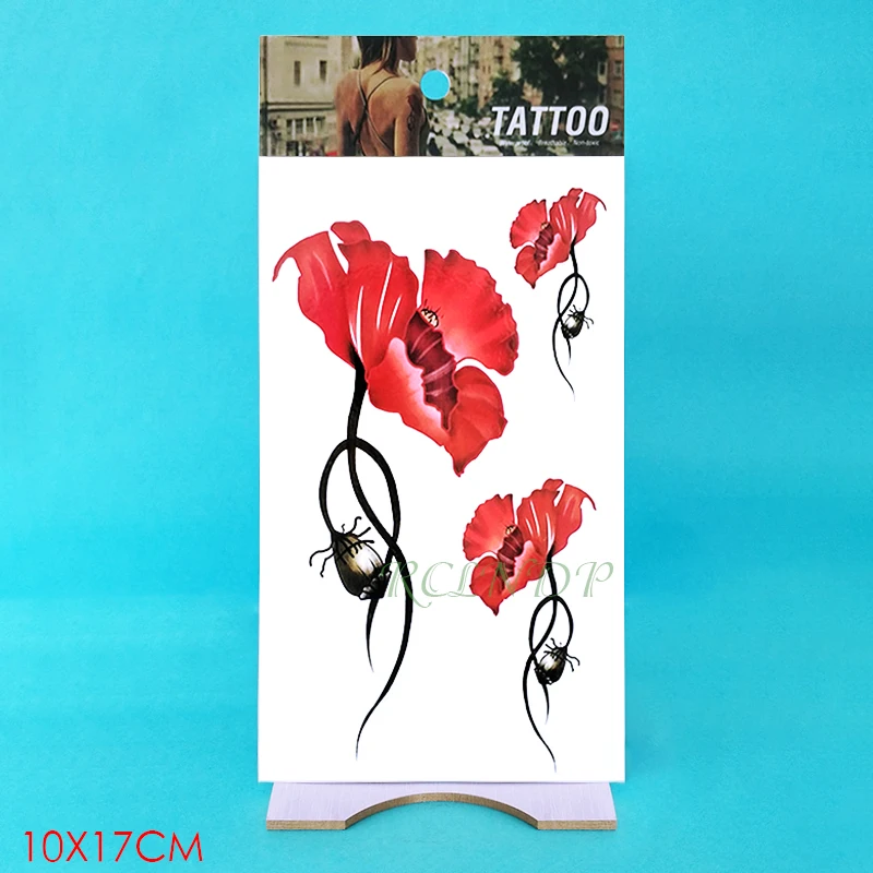 Водостойкая временная татуировка-наклейка с красными цветами, искусство, татуировки флэш-тату для женщин, мужчин, девушек