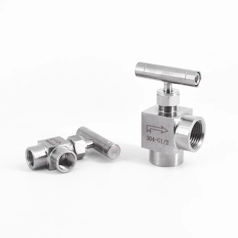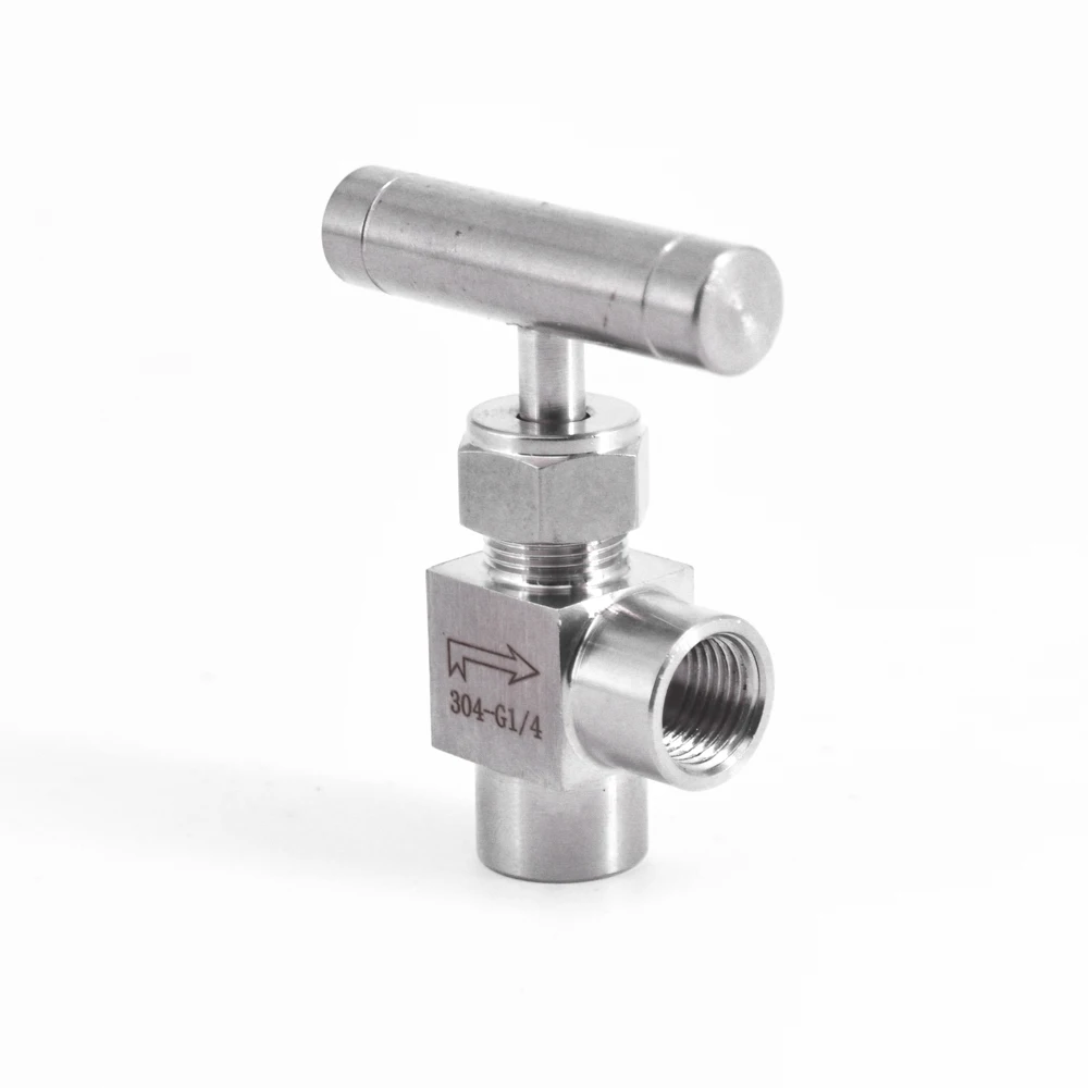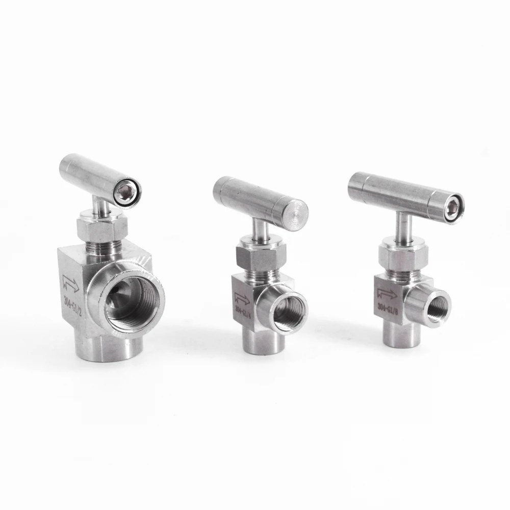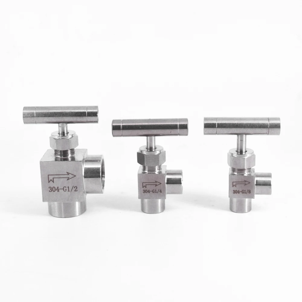 Игольчатый клапан BSP, 18 дюйма, 14 дюйма, 38 дюйма, 12 дюйма, с внутренней резьбой под углом 90 градусов, из нержавеющей стали 304, управление потоком с одной ручкой, 915 фунтов на квадратный дюйм