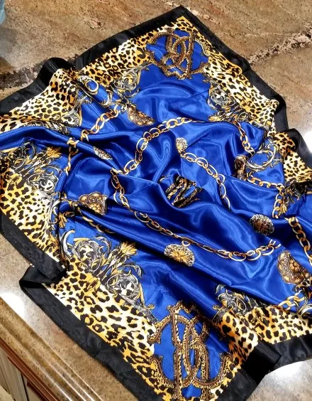 Женский атласный шарф-хиджаб с леопардовым принтом, 90x90 см