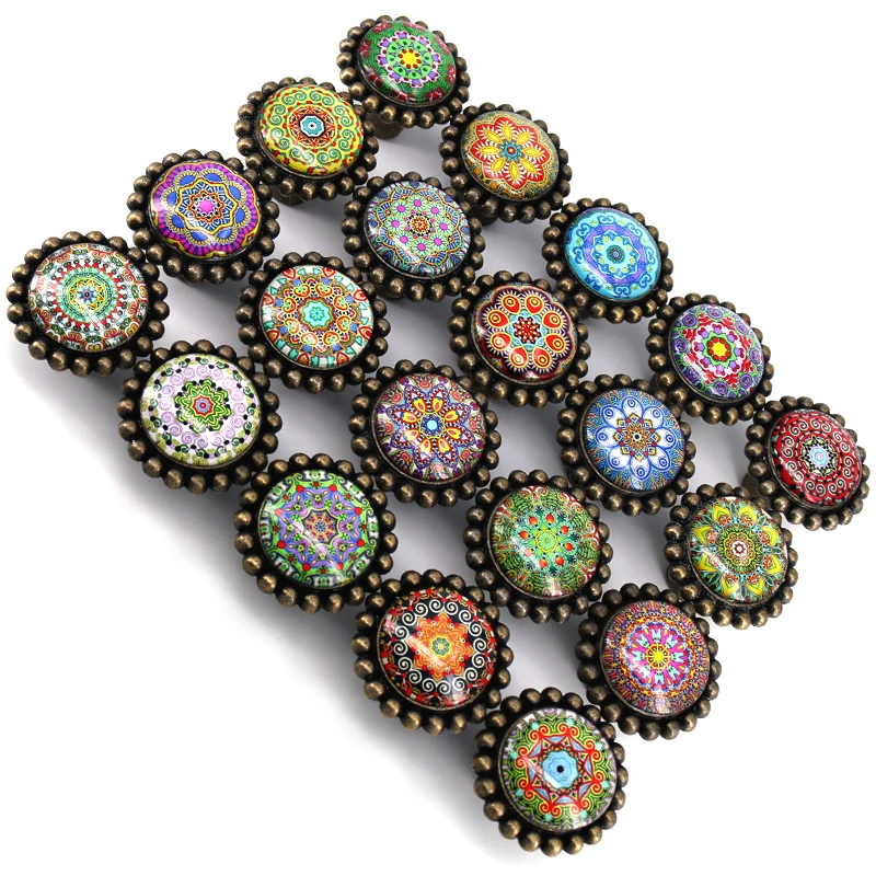 1x цветочный стеклянный кабошон, уникальные ручки для шкафов, ручки для выдвижных ящиков, яркие мебельные ручки, диаметр 42 мм