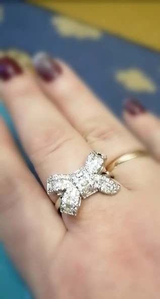 Очень красивое кольцо! Все камни на месте,сверкают! Удобно на пальце,не мешает.Рекомендую магазин и продавца! Всем удачных покупок!