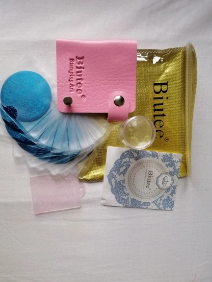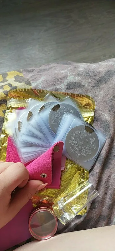 Заказом в принципе довольна, быстрая доставка (заказ 11.11, получила 26.11). Упаковано все в отдельные пакетики, очень много пластика. Знала, что пластины маленького размера, но как-то необычно. Качество хорошее, гравировка глубокая, отпечатывается всё хорошо, главное наловчиться. Футляр немного пахнет, но это пройдёт. Стампер НЕпрозрачный, неудобно стампить, но как походный вариант сойдёт. С продавцом не общалась.