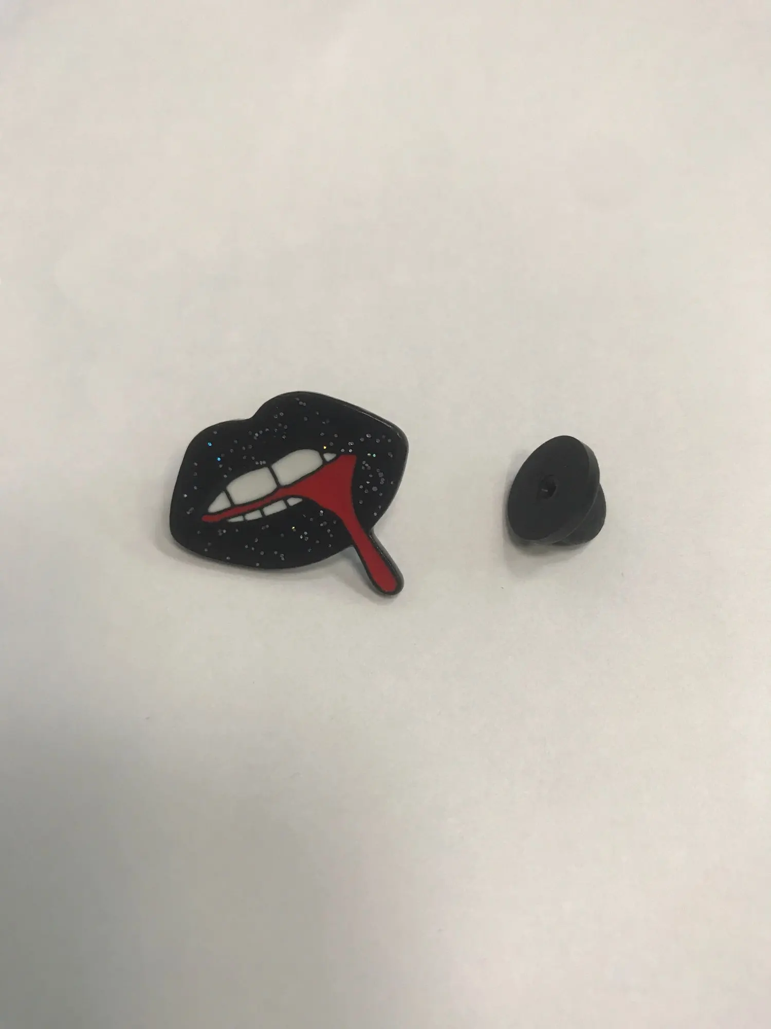 Черная блестящая брошь в виде губ, украшенная языком и красной кровью, значок на джинсовую рубашку, модные аксессуары, смешные романтические ювелирные изделия
