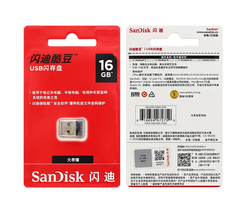 USB-флеш-накопитель SanDisk 100%, CZ33 Mini, 64 ГБ, 32 ГБ, 16 ГБ