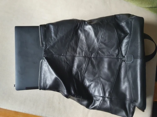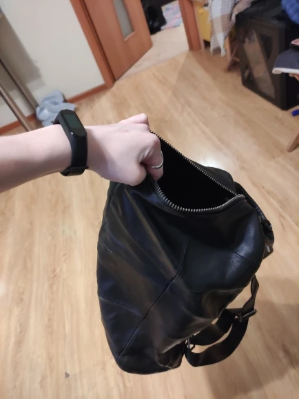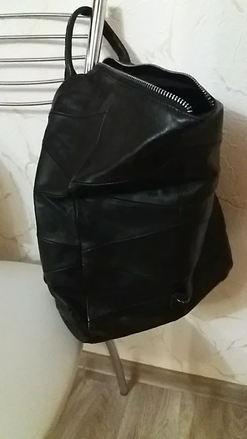 Довольно большой рюкзак вместительный, но крупные предметы тяжело класть из-за узкой горловины и внутренних карманов. Очень крепкий, сшит аккуратно, натуральная кожа. Доставка курьером неожиданно быстрая - в течение дней 10.