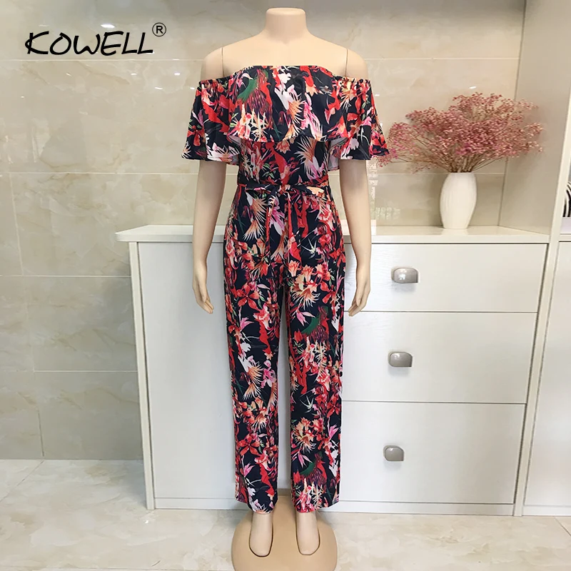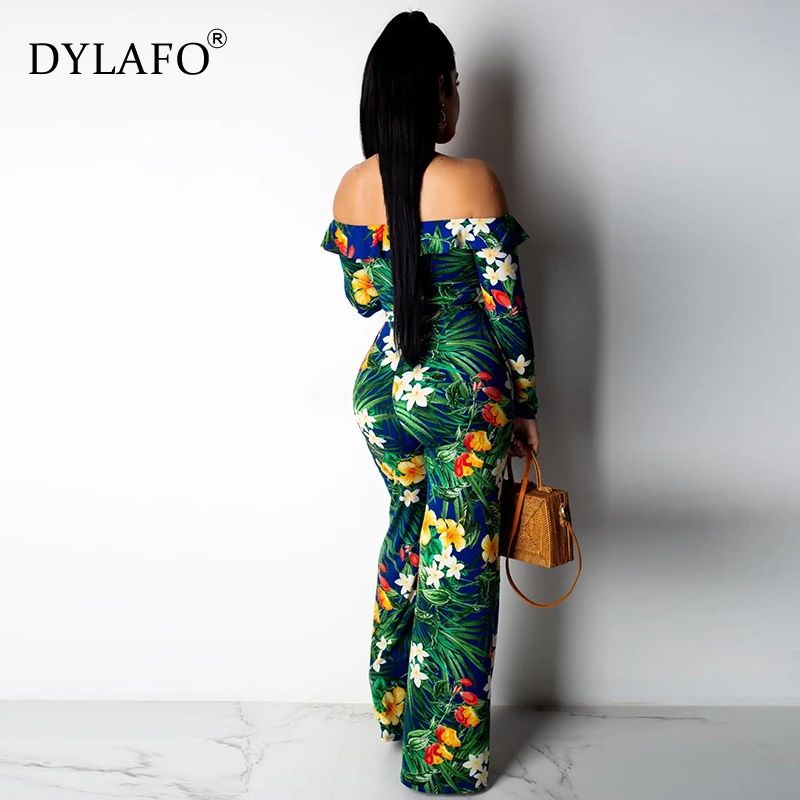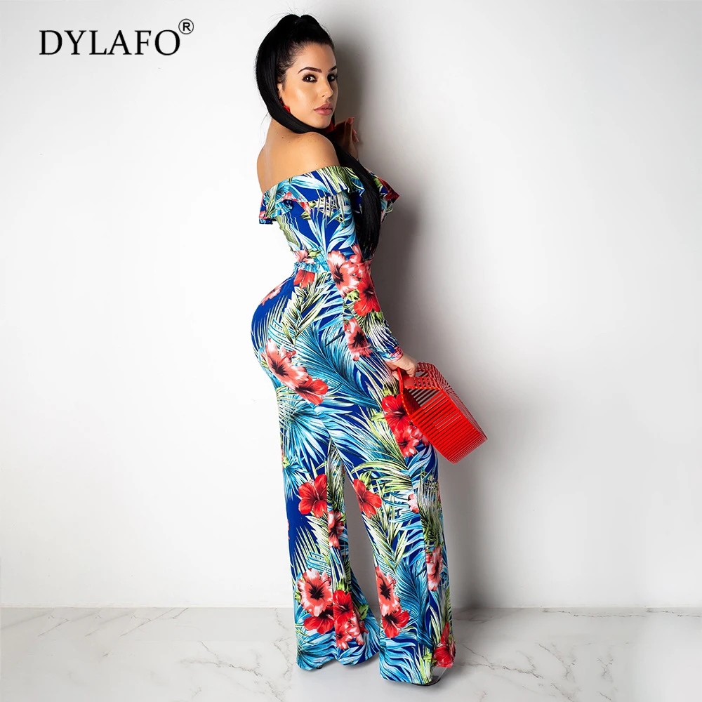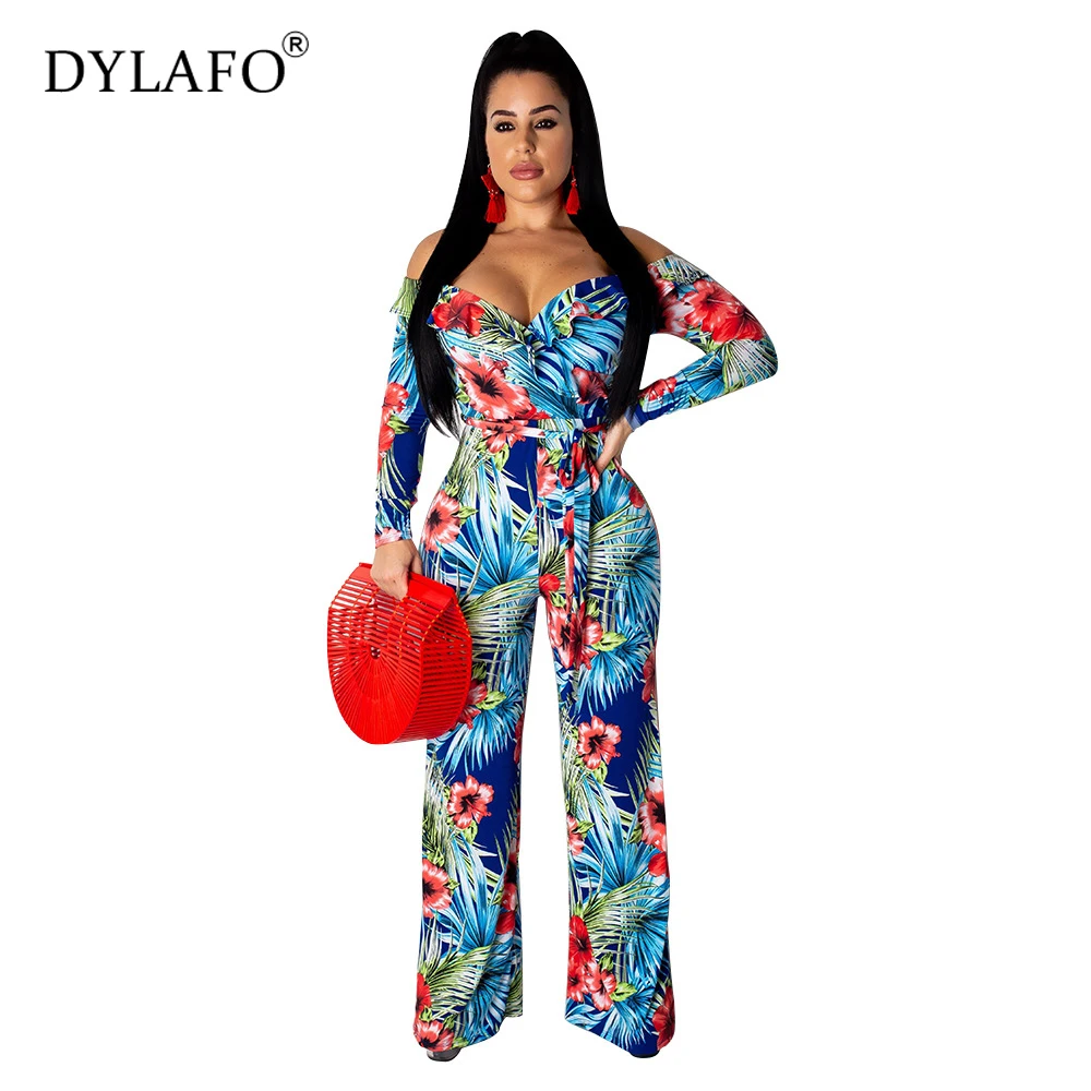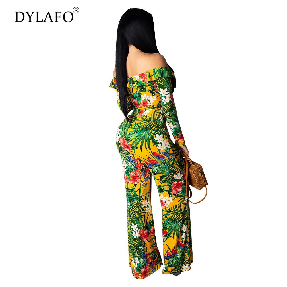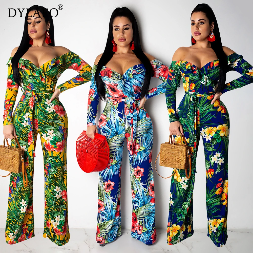 Женский Облегающий комбинезон с открытыми плечами, облегающий пикантный комбинезон с принтом, костюм из двух предметов, Летний комбинезон, Осень-зима 2019