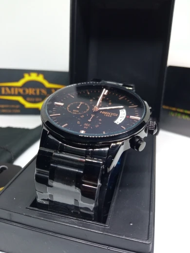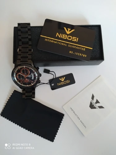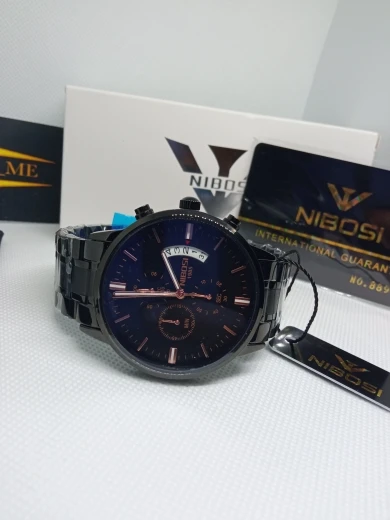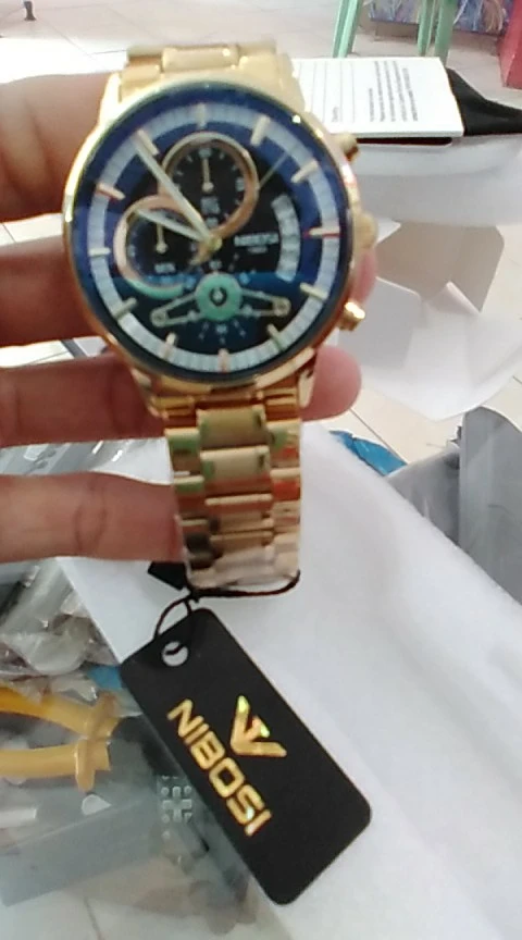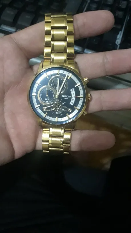 Часы наручные NIBOSI Мужские кварцевые, брендовые Роскошные спортивные светящиеся водонепроницаемые с хронографом, золотистые чёрные