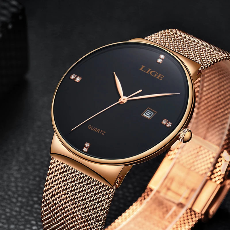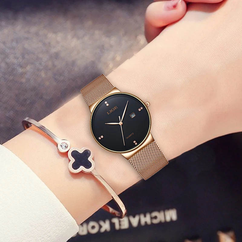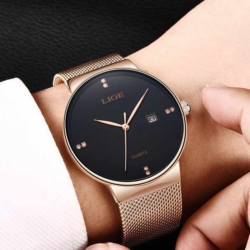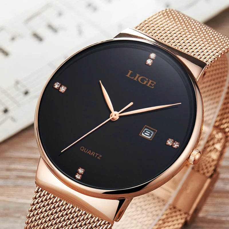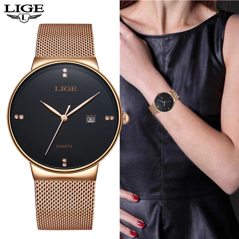 Кварцевые женские часы LIGE, 2019, новые модные повседневные водонепроницаемые часы, женские ультра-тонкие наручные часы с ремешком-сеткой, автоматические часы для свиданий Assista
