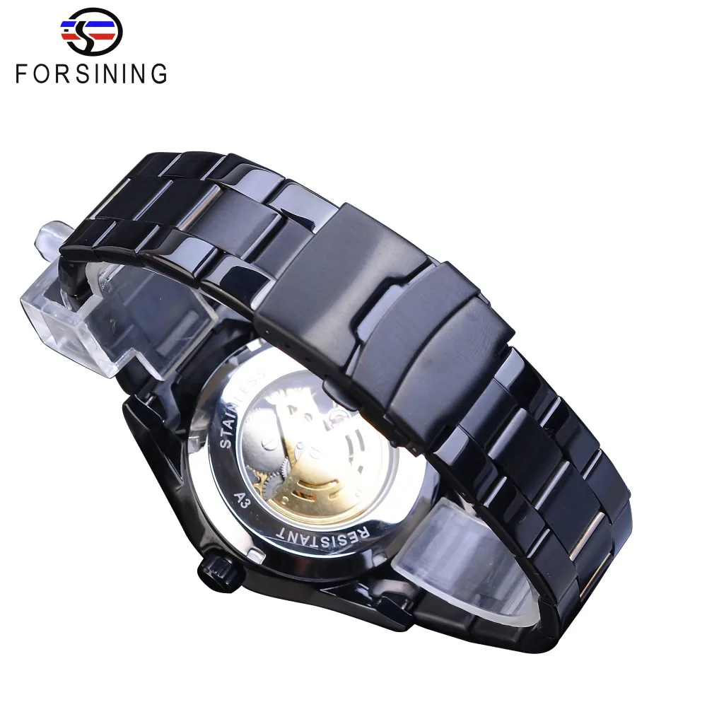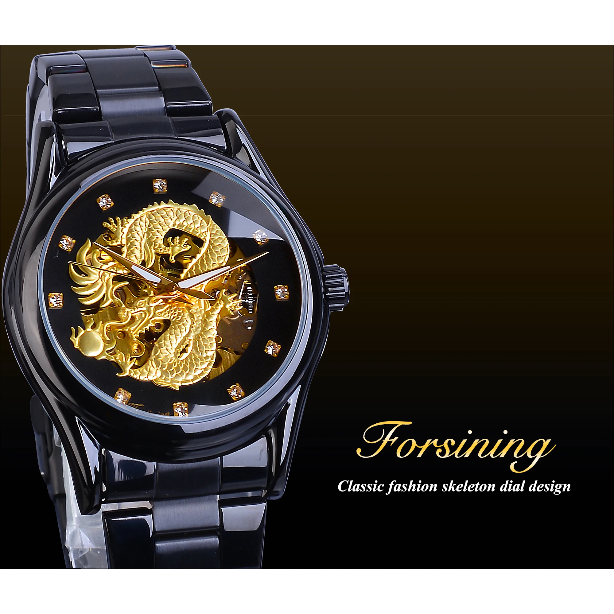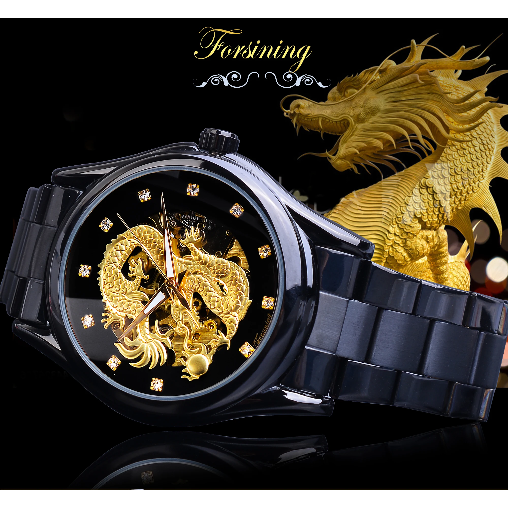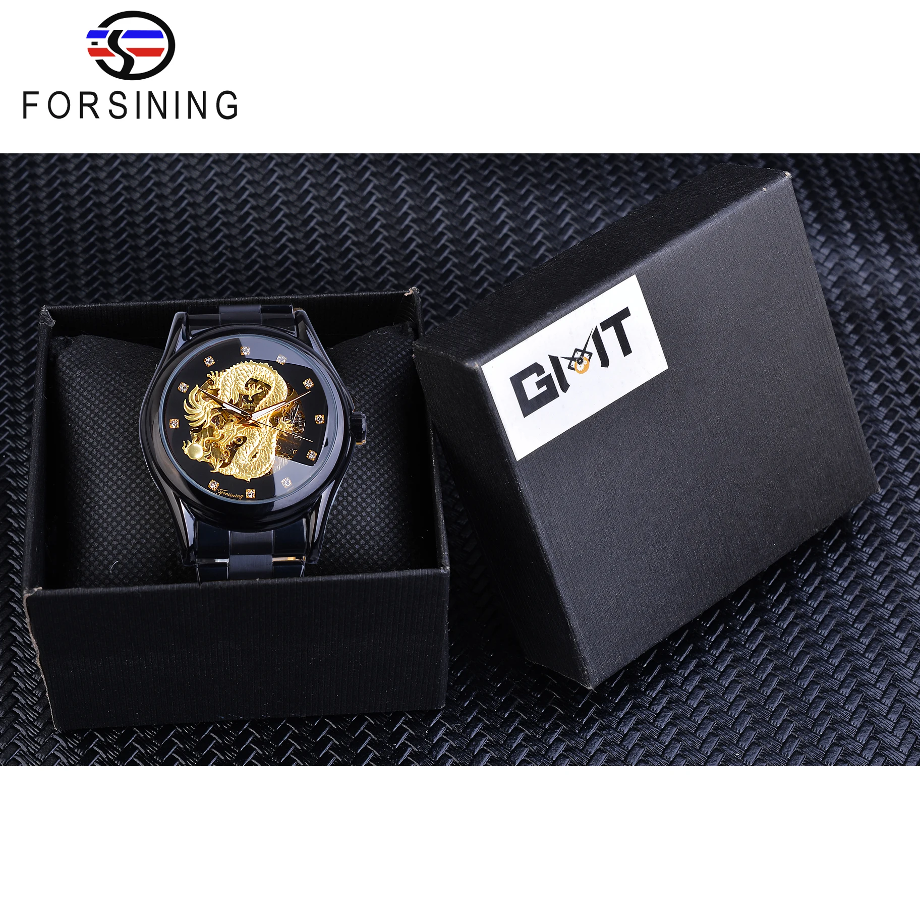 Forsining Роскошные мужские часы с 3d-гравировкой Золотого Дракона, автоматические механические часы из нержавеющей стали, спортивные наручные часы с автоподзаводом