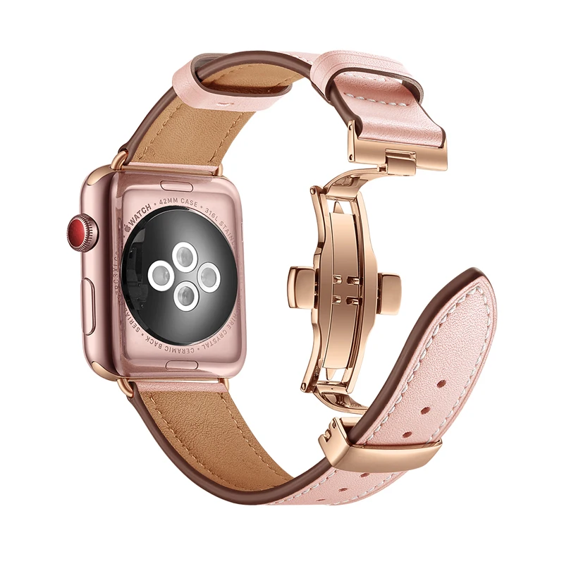 Ремешок с застежкой-бабочкой для apple watch band 41 мм 45 мм 44 мм 40 мм 42 мм 38 мм, iwatch band 76SE5432, браслеты из натуральной кожи