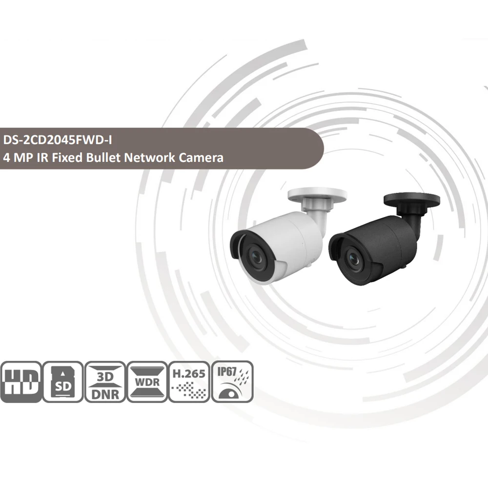 DDS-2CD2045FWD-I4 Мп IR фиксированная пулевая сетевая камера• 1/2.5 "Прогрессивное сканирование CMOS• 2688 × 1520 @ 30 кадров в секунду• Фиксированный объектив 2,8 мм/4 мм/6 мм/8 мм/12 мм• H.265, H.265 +, H.264 +, H.264• 4 анализа поведения• 120 дБ WDR• Питание от Darkfighter• BLC/3D DNR/ROI/HLC• ИК-диапазон: до 30 м• Встроенный слот для карт microSD/SDHC/SDXC, до 128 ГБ• IP67