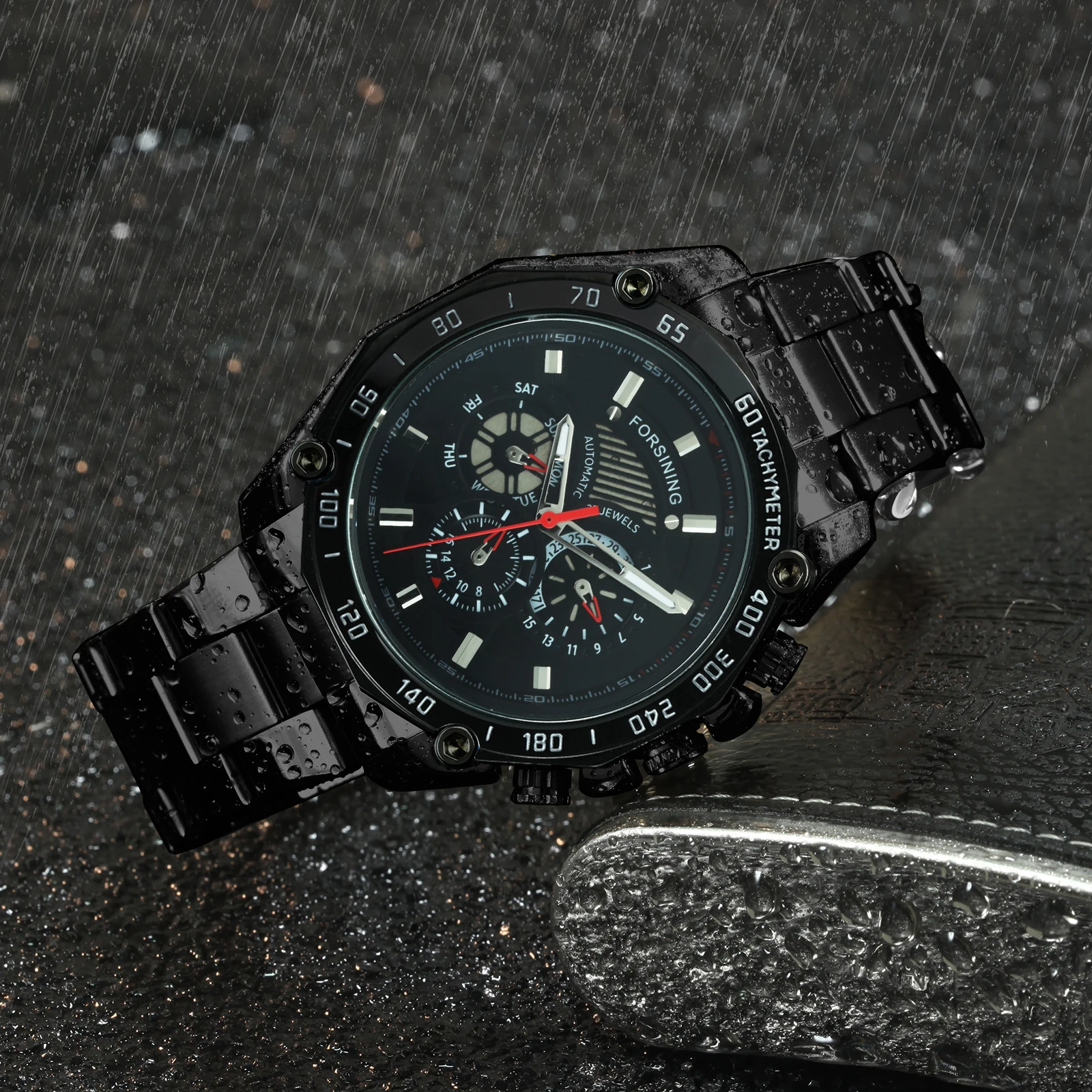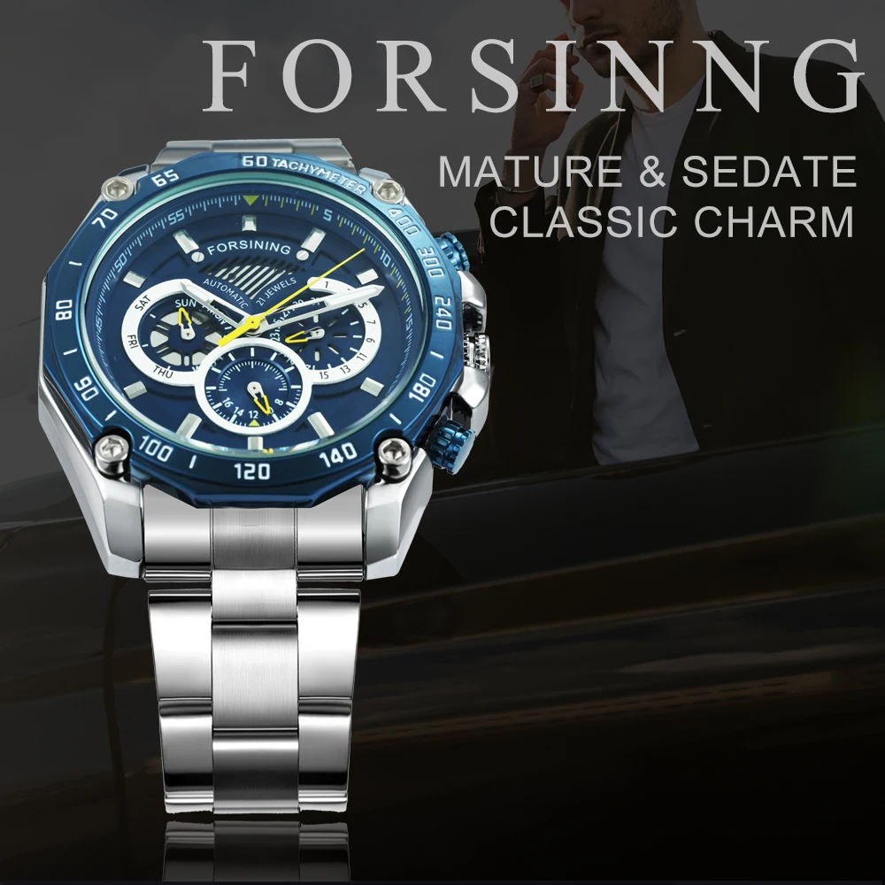 Мужские механические часы FORSINING, модные спортивные часы с хронографом и 3 циферблатами из нержавеющей стали, 2019