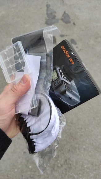 Приехал достаточно быстро. Продавец не забыл положить в комплект набор цветных фильтров на вспышку, рассеиватель и кейс для батареек. мелочь а приятно. Ресивер работает отлично. Тестировал его с вспышкой от canon.