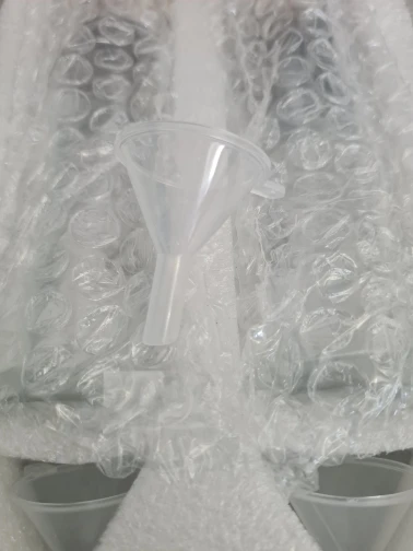упаковка отличная, всё пришло целым. бутылки довольно тяжёлые, из толстого стекла. к каждой бутылке есть маленькая воронка!