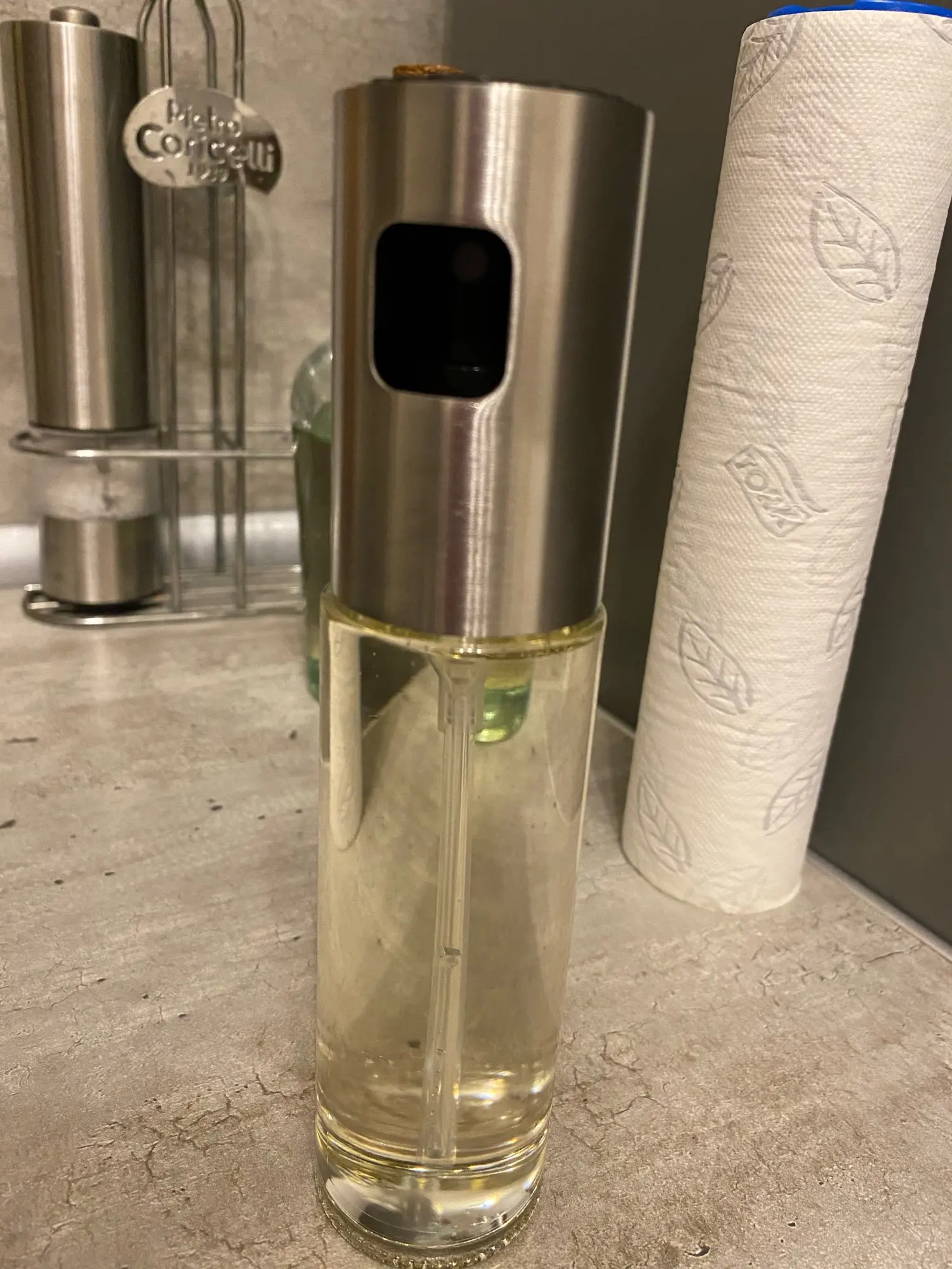 Классная бутылочка! Очень понравилось пользоваться! Кстати, когда масло холодное, брызгает струёй, не очень удобно, а комнатной температуры всё отлично! В комплекте была маленькая воронка, очень удобная для этой бутылочки. Привез курьер))