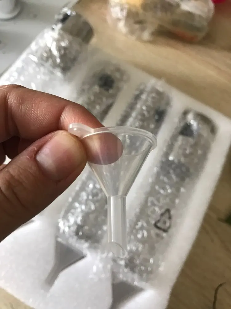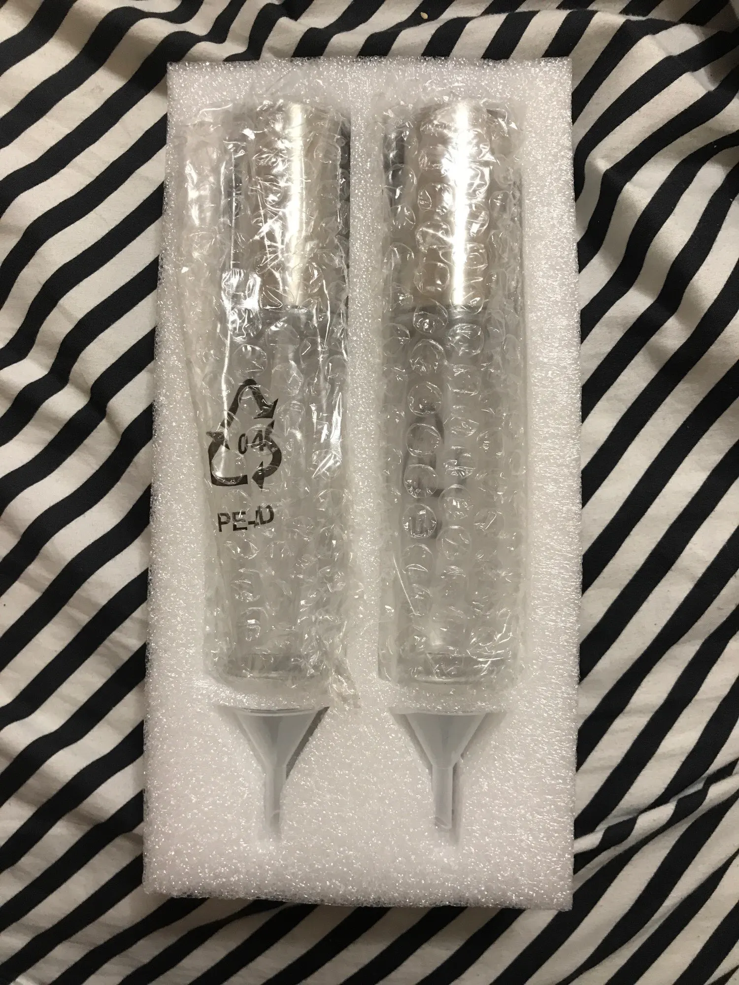 Ещё не пользовалась, но выглядит качественно. Пришёл без дефектов, хорошо упакован. В комплекте маленькая воронка для удобства