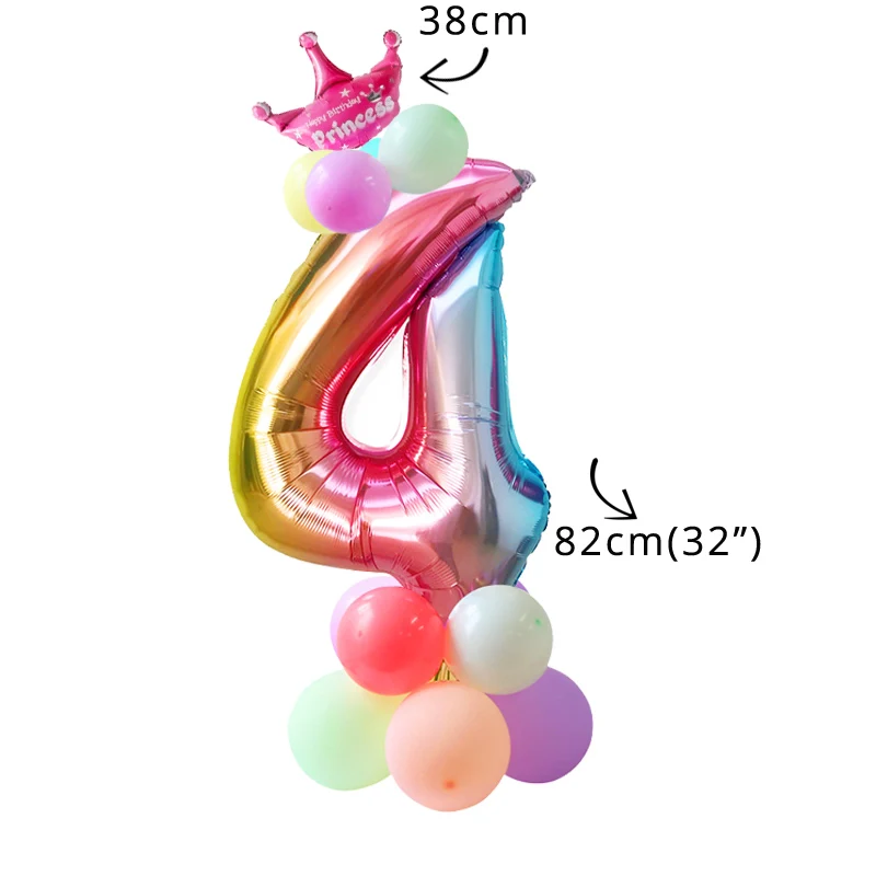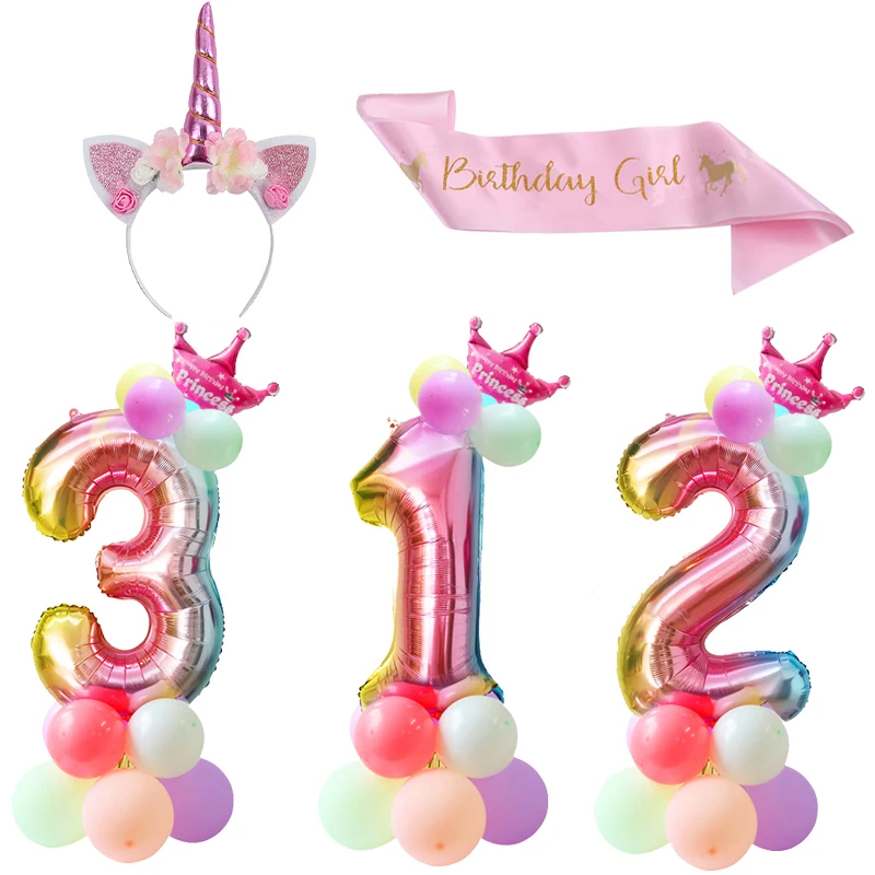 32inch Радуга Номер Воздушные Шары Фольгированные Шары Единорог День Рождения Украшения Девушка Шелковый День Рождения створка и оголовье на День Рождения Украшения Дети