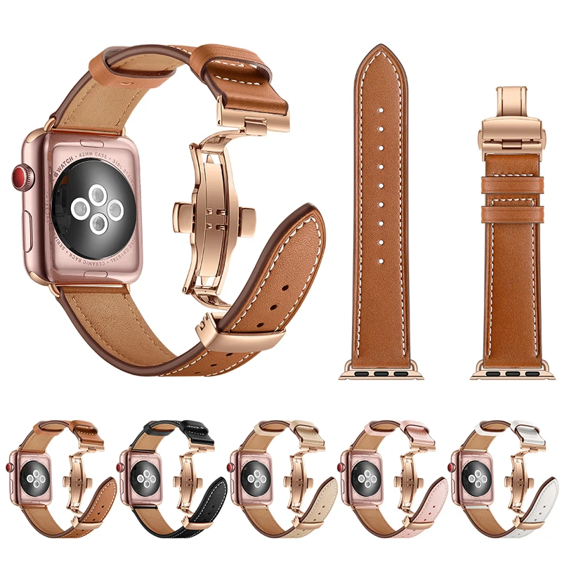 Iwatch band Бабочка раскладная застежка пряжка из натуральной кожи ремешок для часов для Apple Watch series 432 ремешок для умных часов
