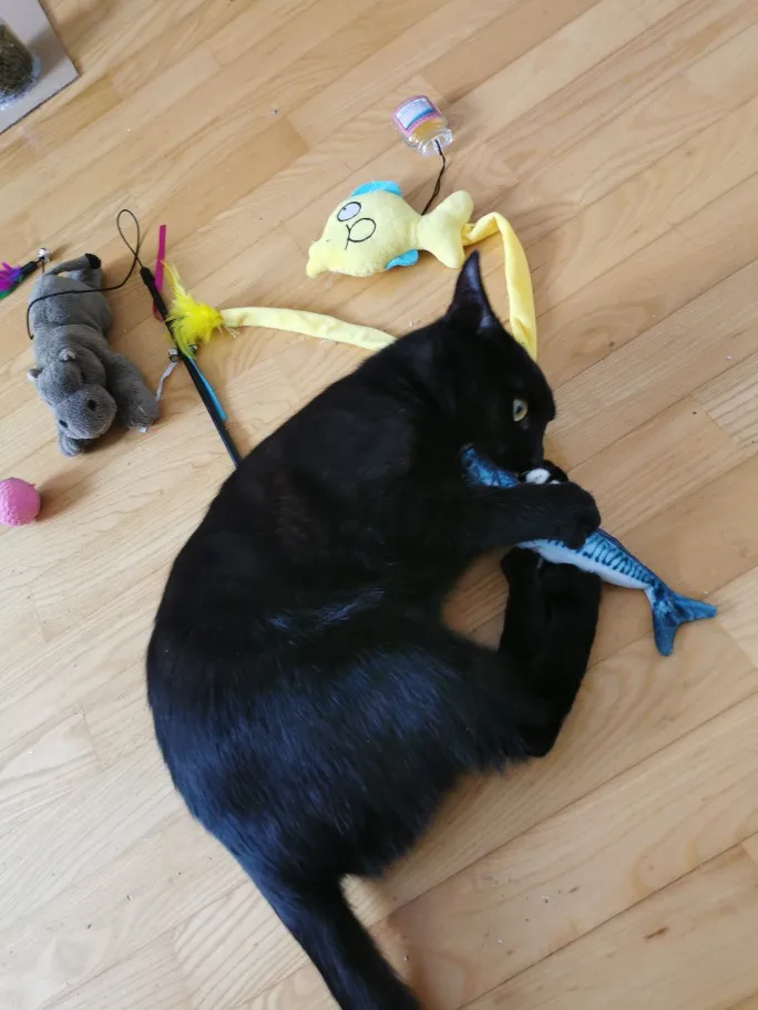 рыба классная, кошка сразу ее забрала играться