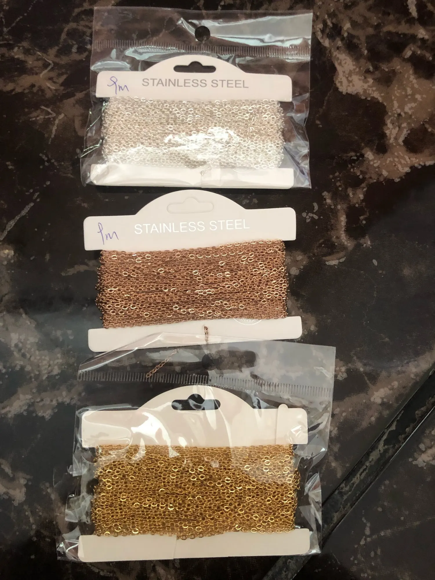 9 метров, звеньевые цепи из нержавеющей стали цвета розового золота, 2 мм, для самостоятельного изготовления ожерелья, ювелирных изделий
