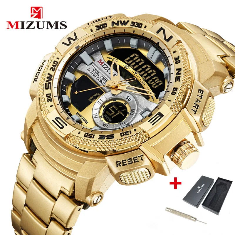 Mizums часы мужские военные кварцевые аналоговые цифровые золотые наручные часы для мужчин водонепроницаемые спортивные мужские часы Relogio Dourado Masculino