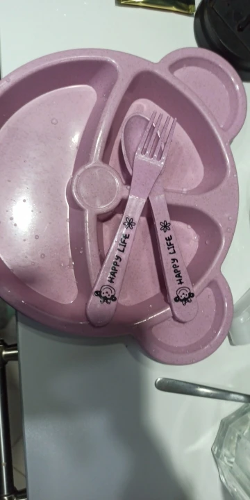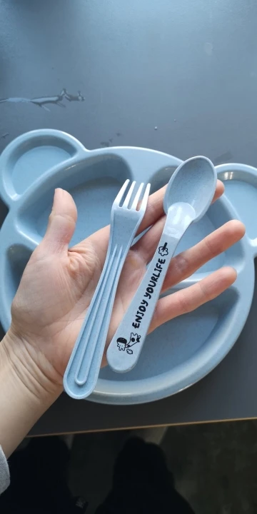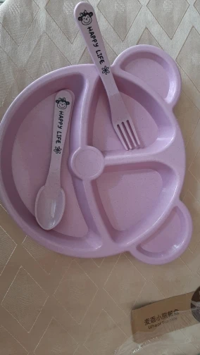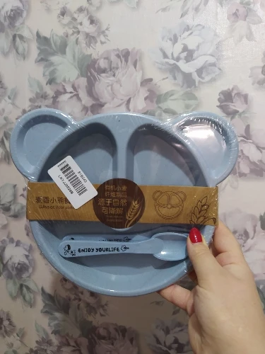 Тарелка прикольная,удобные выемки,не бьющаяся.Ложка и вилка в комплекте.Пока что не использовали,ребёнок ещё сильно маленький.После использования дополню отзыв.