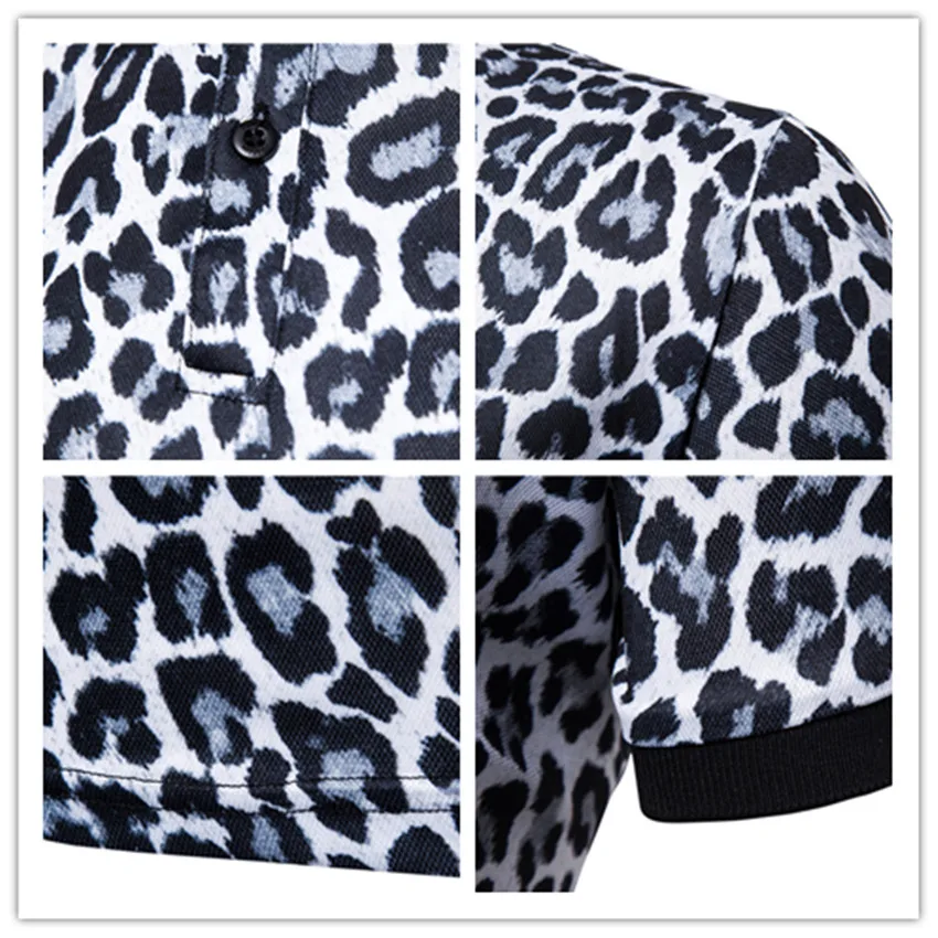 Мужская летняя рубашка-поло с леопардовым принтом и отложным воротником