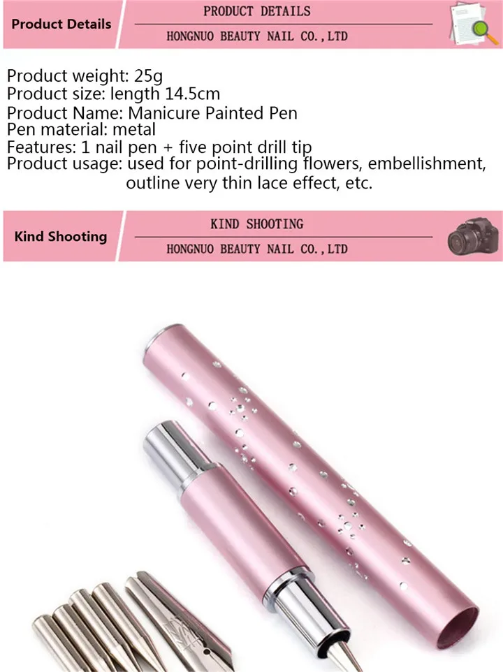 Ручка перьевая с пятью насадками, для маникюра и рисования