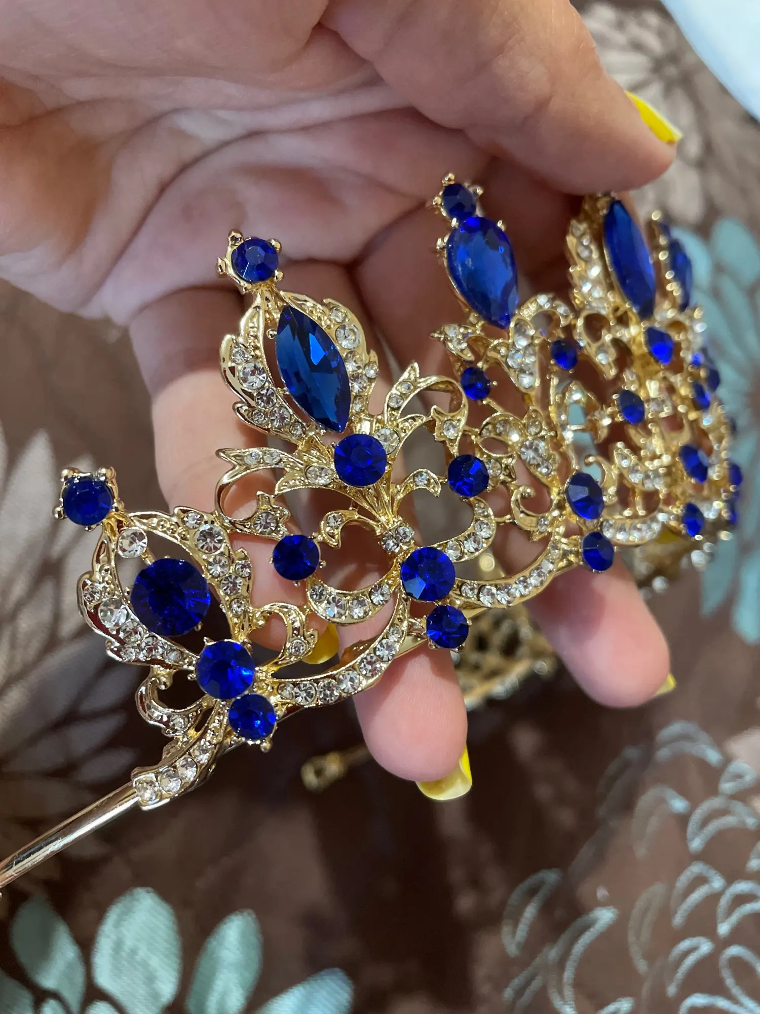 Свадебные тиары в стиле барокко, золотые, красные, Синие стразы с кристаллами, роскошная королевская повязка на голову для невесты, аксессуары для волос, 2019