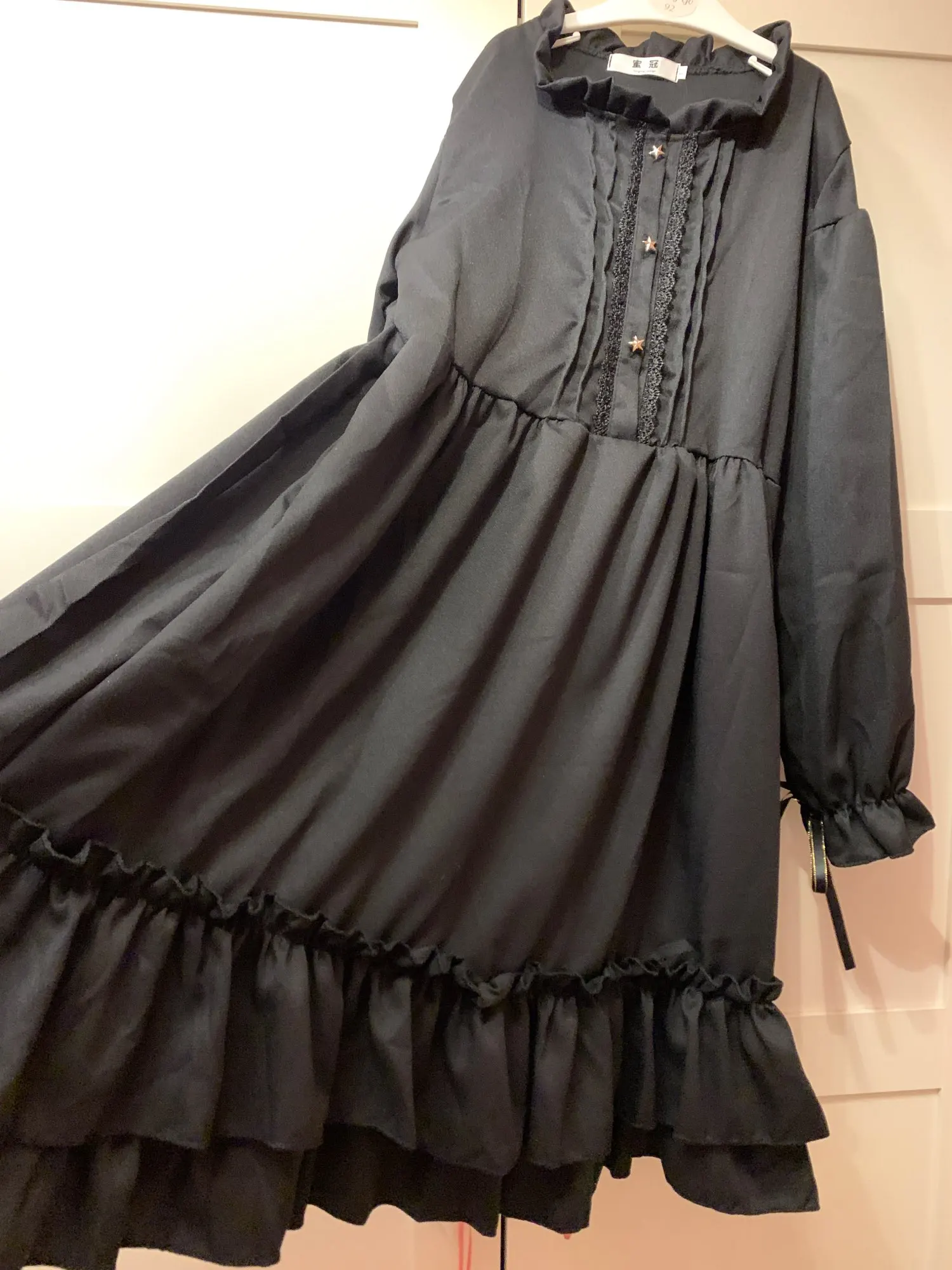 Woherb 2022 японское готическое летнее шифоновое платье, женские винтажные бандажные черные платья в стиле "Лолита" с оборками и бантом, платья, женское платье 21664