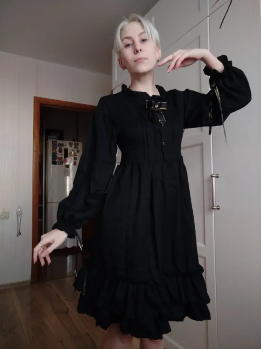 Платье просто волшебное, иначе никак не опишу Брала М, мой рост 145, поэтому оно смотрится длиннее чем нужно, но меня всё устраивает. Пуговицы в виде звёзд, три штуки, запасных в посылке нет, поэтому не теряйте. Бант с луной лежит отдельно, сзади шпилька чтобы прикреплять к самому платью, шпилька надёжная и крепкая, на рукавах по две ленты, которые вы можете завязать как угодно, пришиты тоже надёжно и крепко держатся, после глажки на минимуме с платьем всё нормально, после стирки с ним всё тоже было хорошо, лишь в некоторых местах торчали ниточки, которые можно обрезать. Внутри рукавов резинки, на худые руки как раз, не тугие, также есть пояс, который довольно высоко, поэтому завязать выйдет нормально его только сзади, само платье не просвечивает. Постаралась написать как можно больше нужной информации, надеюсь кому-то будет полезно и информативно ♥