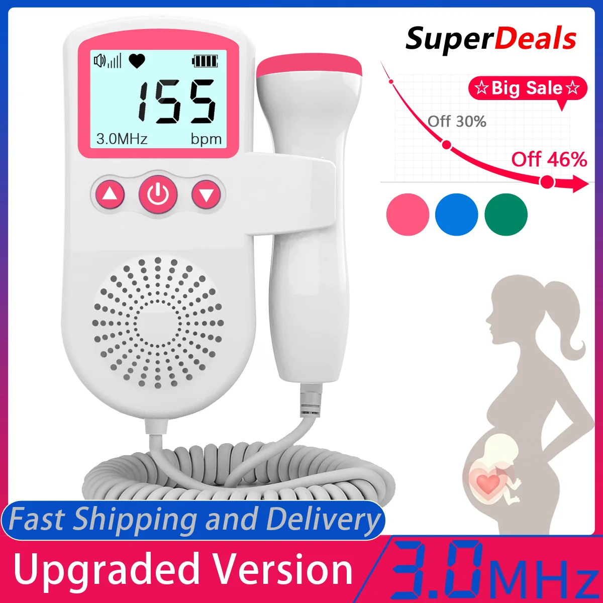 Обновленный 3,0 МГц доплеровский фетальный монитор сердечного ритма домашняя беременность ребенок фетальный звук детектор сердечного ритма ЖК-дисплей без излучения