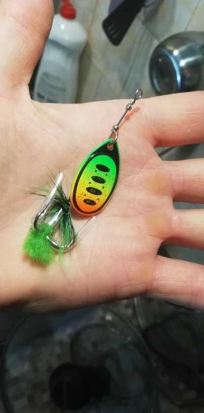 Доставка быстрая: заказ 28.08.2020, прибыло 15.09.2020. Заказал второй раз и сразу 2шт цвет 2 и 2 шт цвет 1 вес 12гр. Предыдущий раз заказал опробовать 1 шт цвет 2 вес 12гр: на первой же рыбалке поймал кучу окуней, в основном 300-400 гр и щуку 1,1 кг (см.фото);) но в конце рыбалки водоем «забрал» вертушку:( Вертушка отличная: лепестки из цветного металла (магнит не притягивает), заводится отлично, окуня «косит». Один небольшой недостаток: сам крючок обвязан мишурой (блестяшка), после небольшого количества поклевок она начинает отрываться (но можно дополнительно обвязать ниткой, думаю проблема уйдет). Если цена останется на том же уровне, буду заказывать еще.