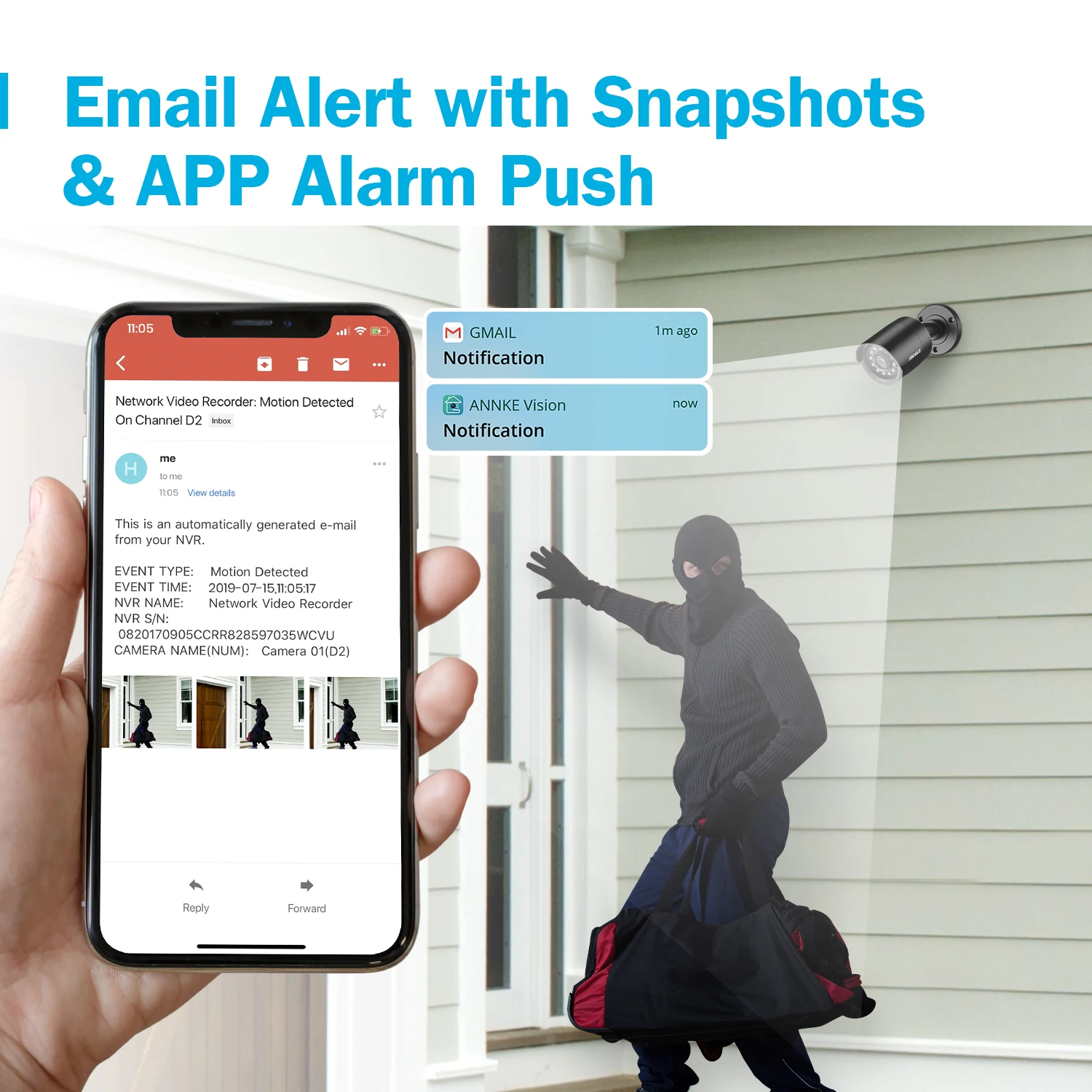 Камера видеонаблюдения ANNKE, инфракрасная камера безопасности с за...