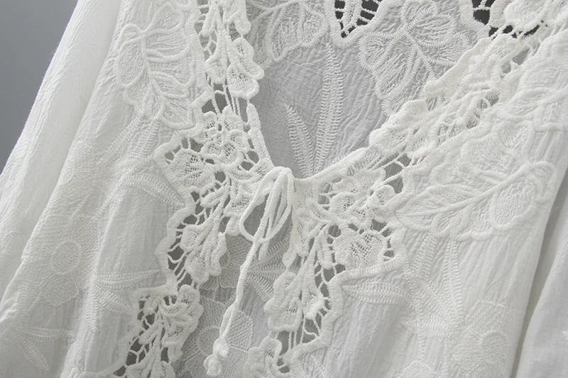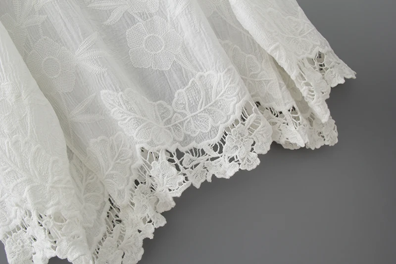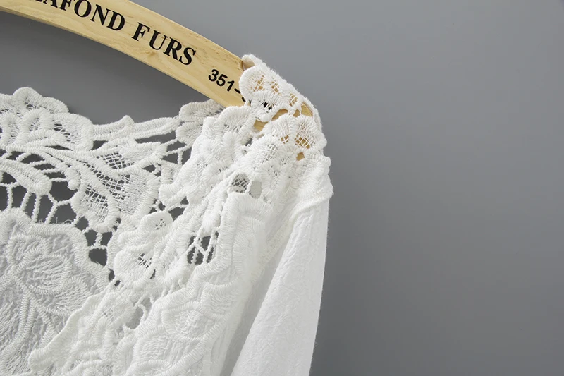 кружева сексуальные блузки рубашка семь четверти рукав 2019 летние женские топы белые полые пляжные пальто женская одежда 800i3