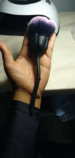 Эта кисть-именно то, что я ожидал. Очень мягкий. Выглядит розовый, но фиолетовый, как розовый. Я поделился фотографией кисти в своей руке, чтобы вы могли видеть, как долго она находится. Я техник по маникюру, поэтому он идеально подходит для меня. Надеюсь, мой отзыв будет полезен.