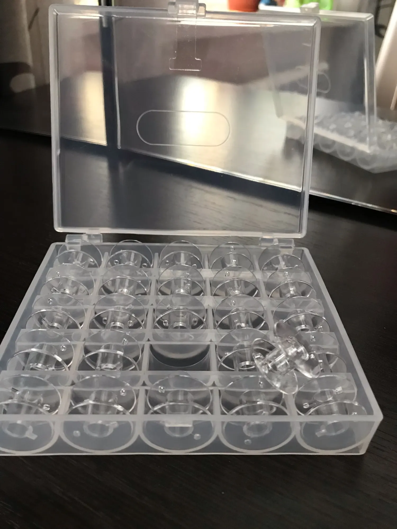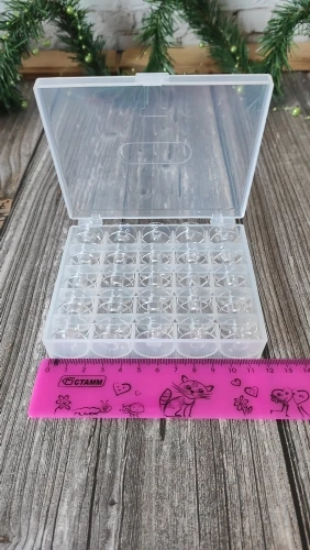 Контейнер для шпулек из прочной толстой пластмассы. Заказом довольна.