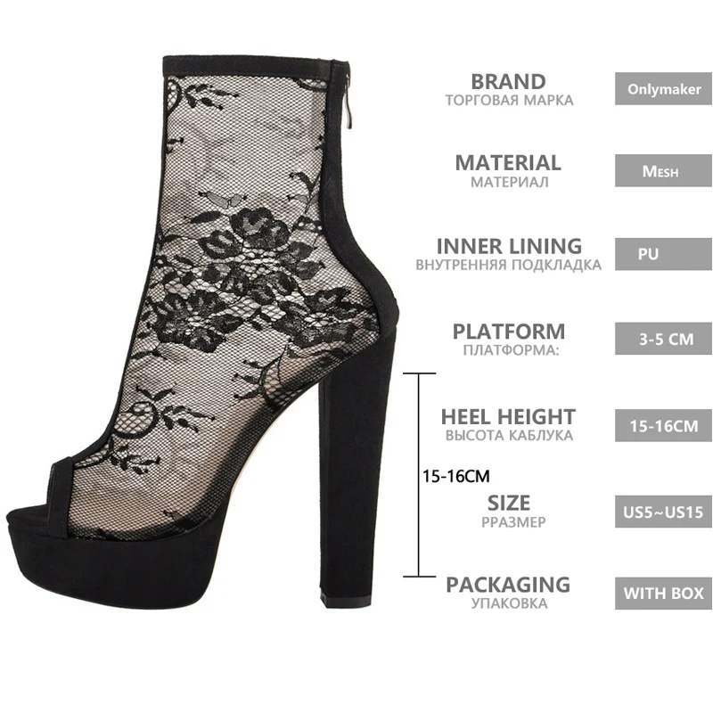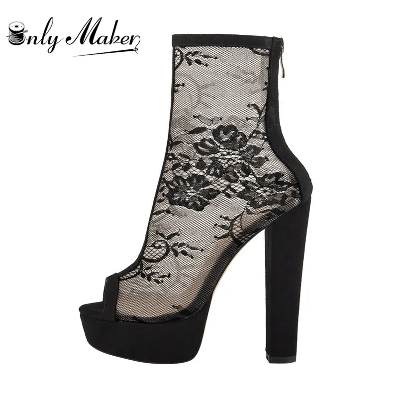 Женские черные сетчатые ботильоны Onlymaker на платформе со шнуровк...