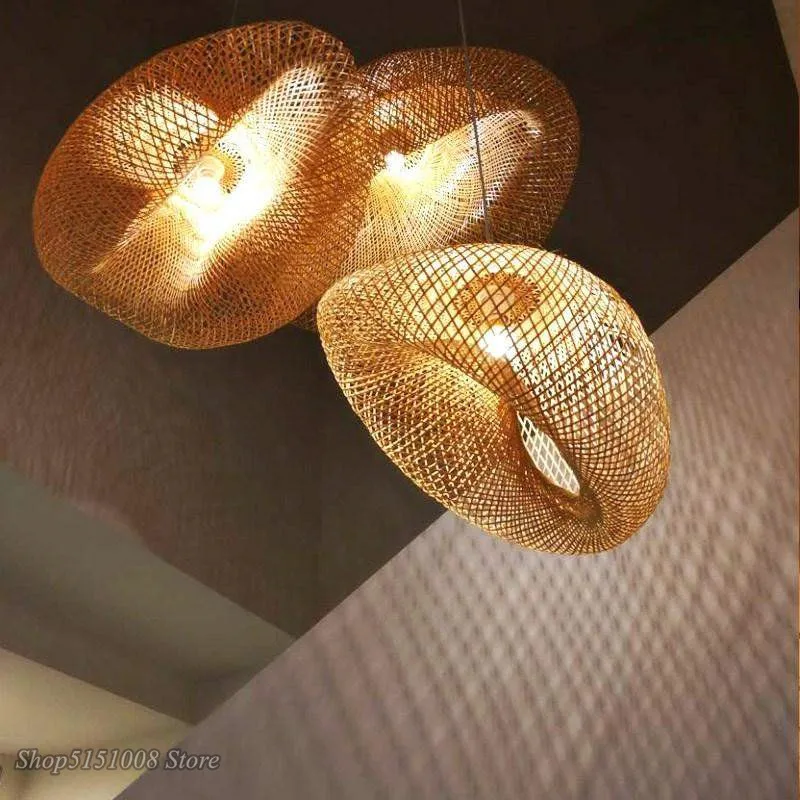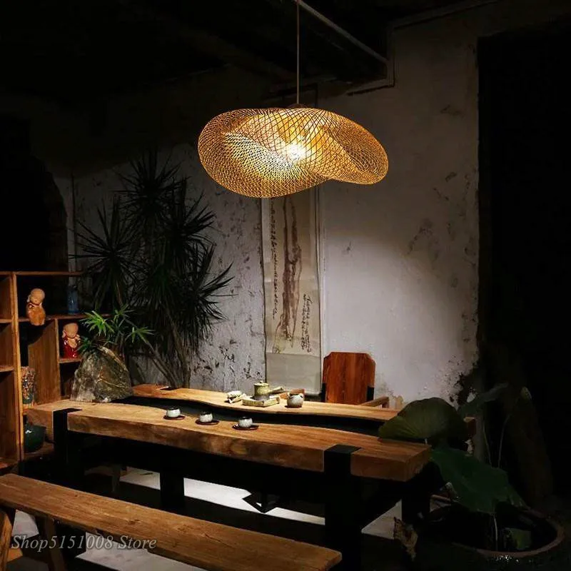 Китайские подвесные светильники ручной работы из бамбука, подвесные светильники для ресторана, для кухни, светодиодный подвесной светильник для кофе
