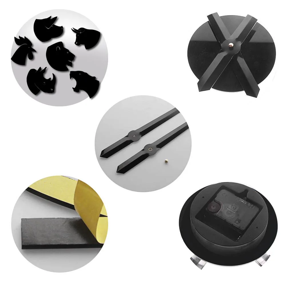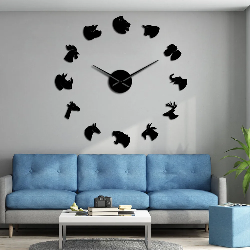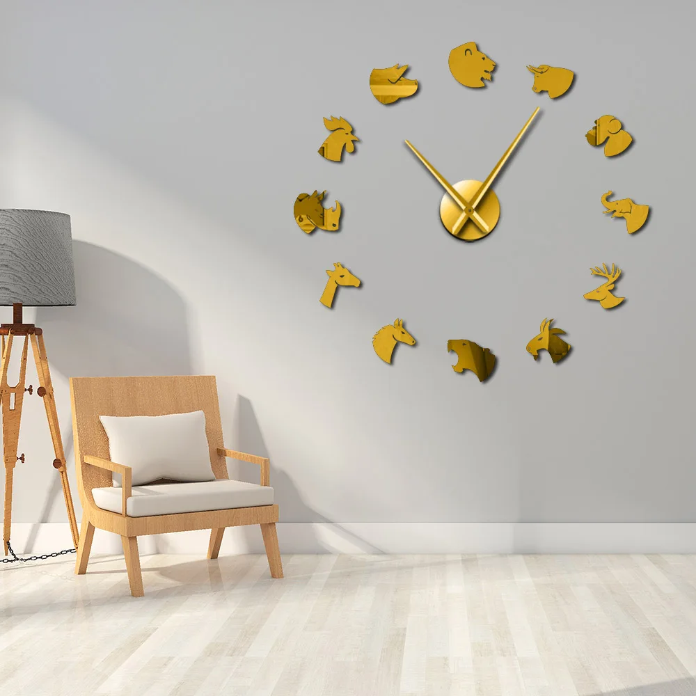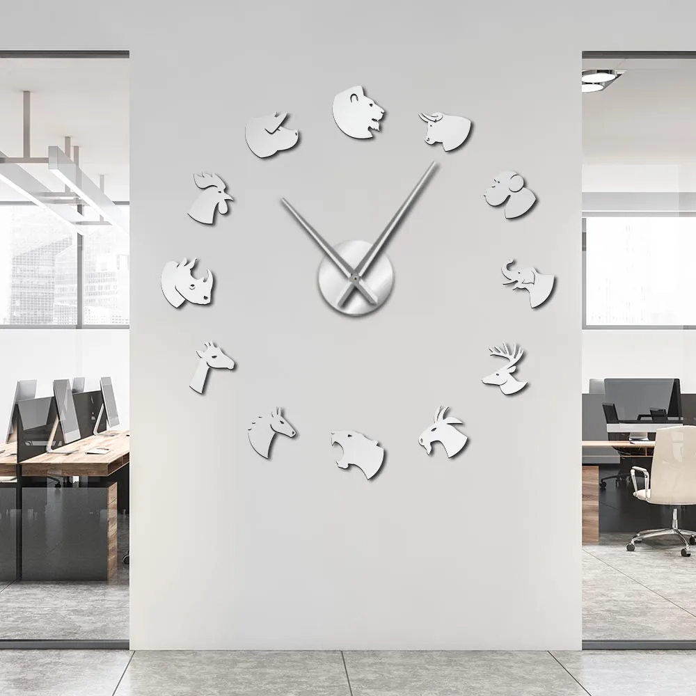 Акриловые простые настенные часы Land с изображением животных, сделай сам, кварцевые часы с зеркальным эффектом, наклейками, львом, тигром, слоном, лошадью, головой животных