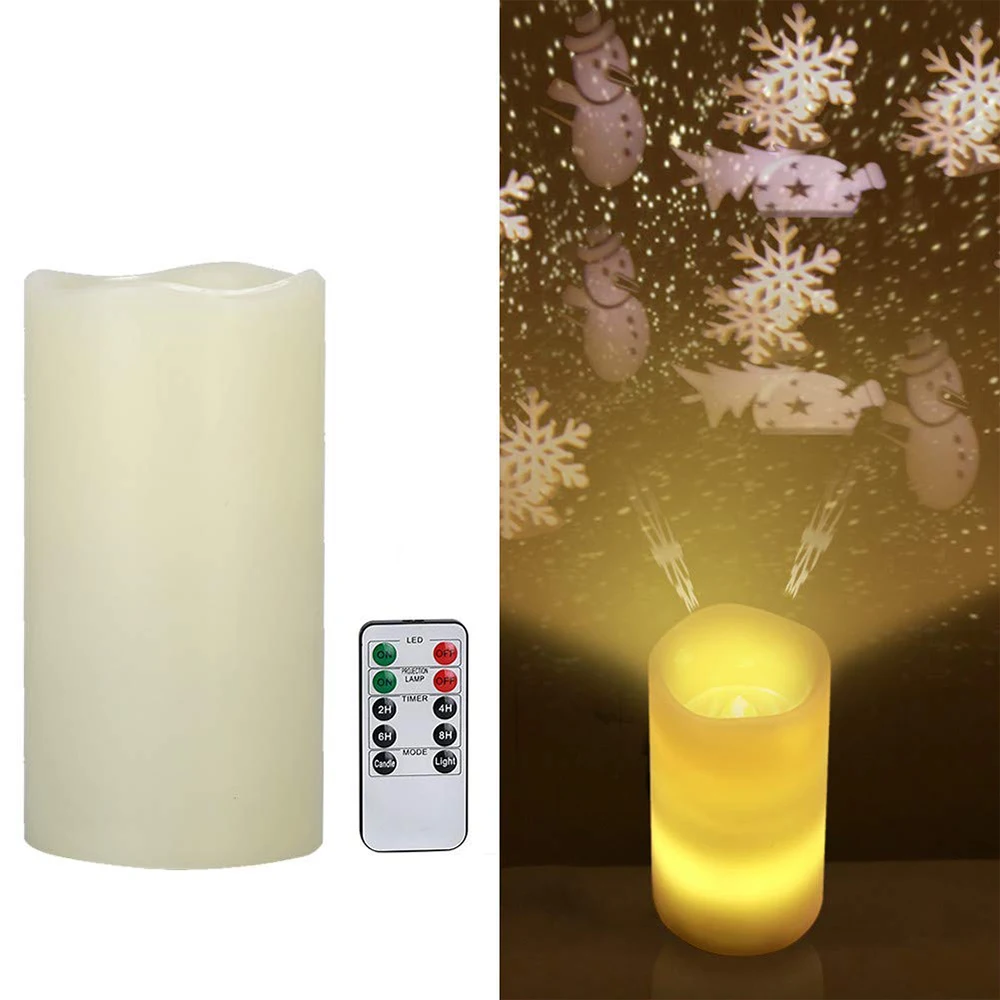 Светодиодная свеча, вращающаяся проекционная лампа, Рождественский Снеговик, снеговик, USB мечта, Романтический креативный ночник, 3AA аккумулятор