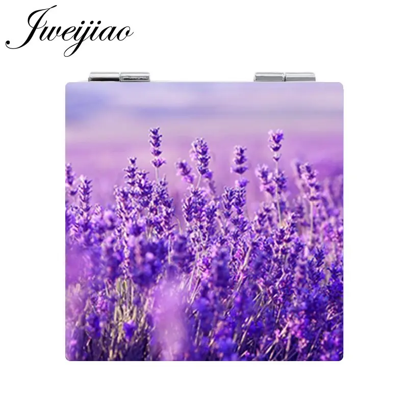 Зеркало для макияжа JWEIJIAO с лавандовыми и фиолетовыми цветами, мини складное квадратное увеличение 1X2X, искусственная кожа, косметические инструменты для девочек