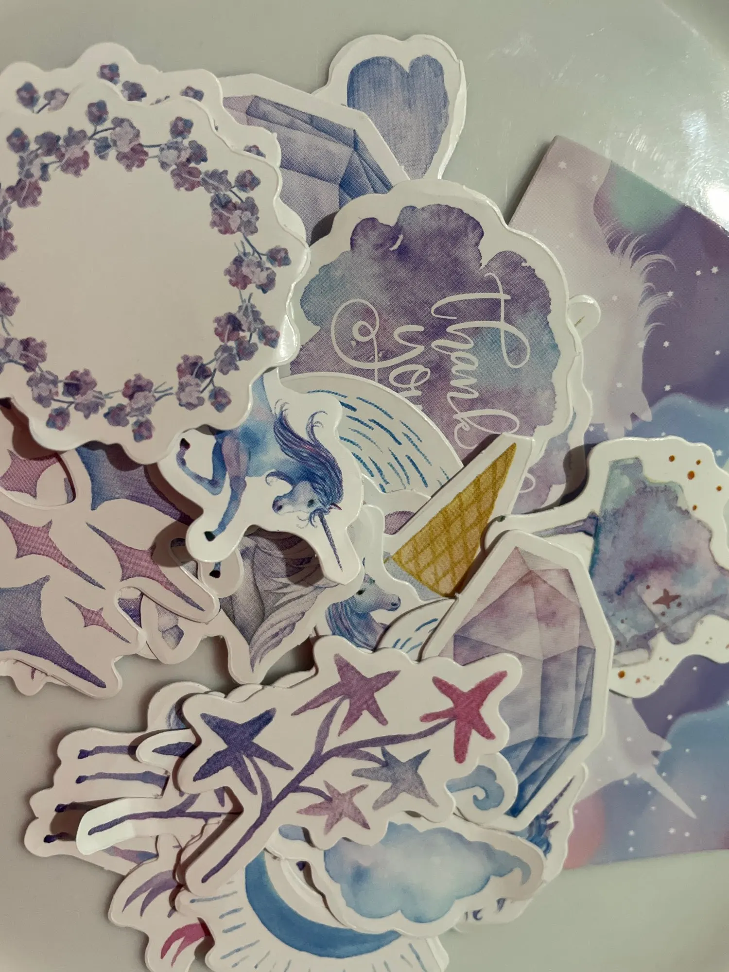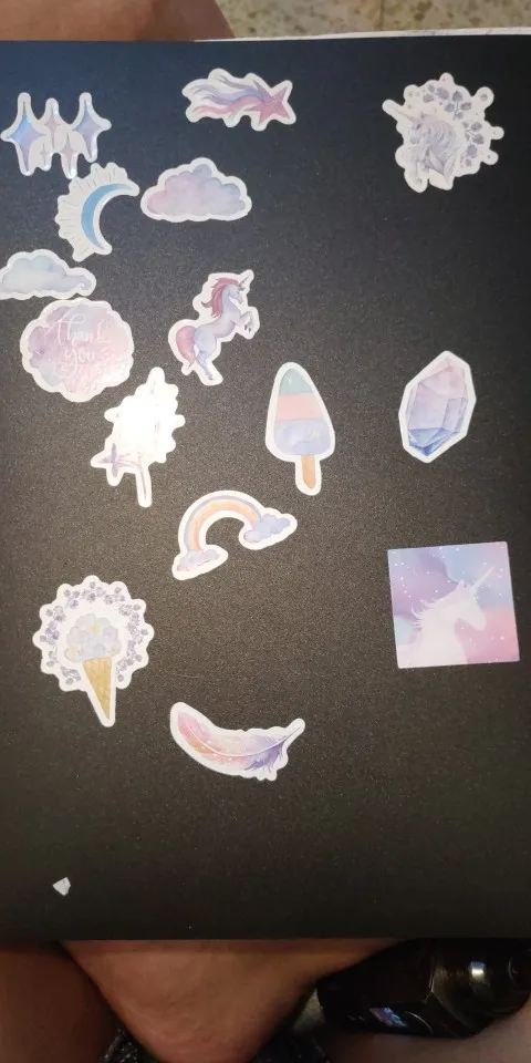 Очень милые наклейки в виде маленького единорога. Я бы хотел, чтобы было больше единорогов, чем другие вещи, такие как листья и перья, но есть пары каждого, и они красивые, и цена отличная.