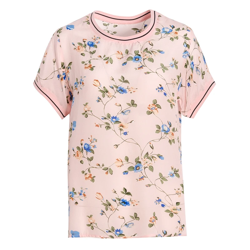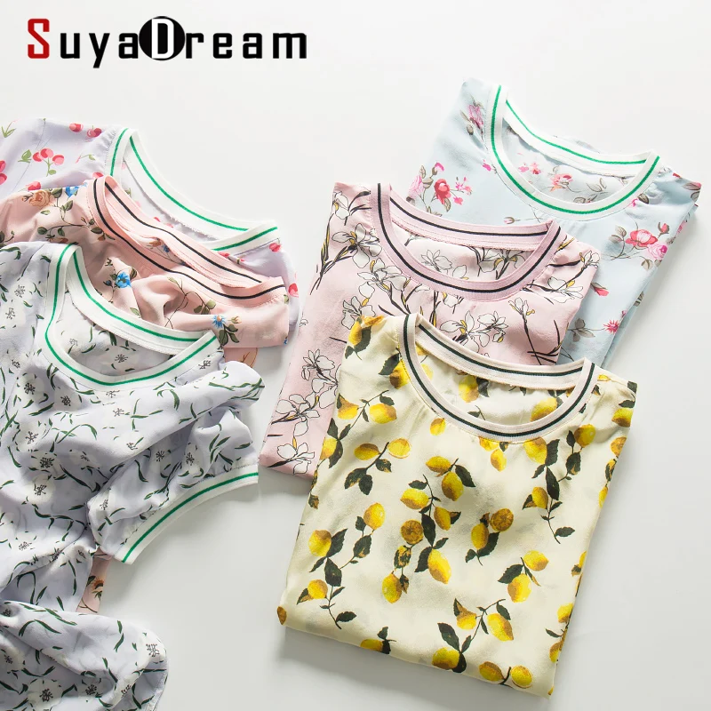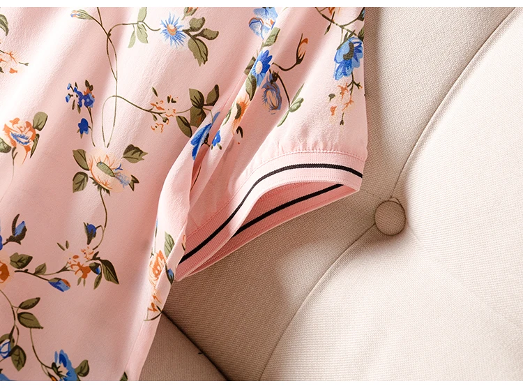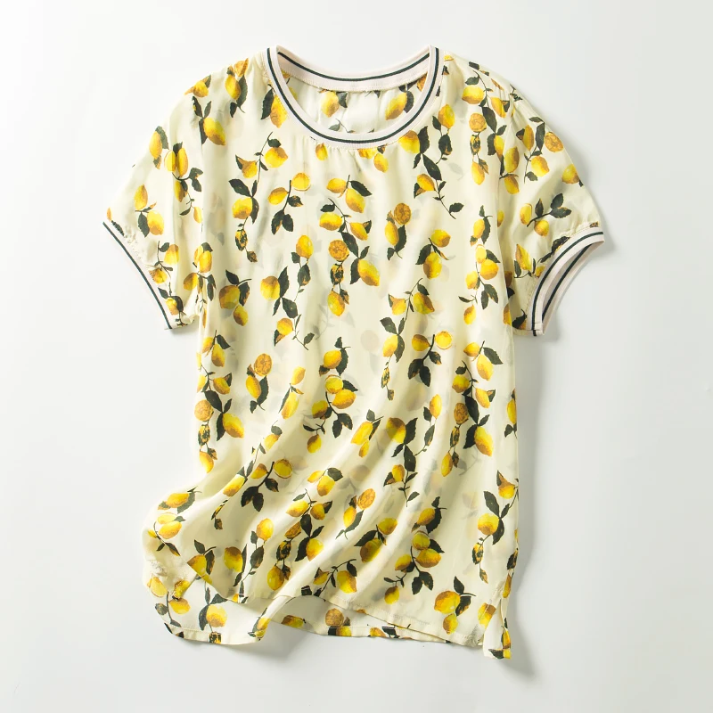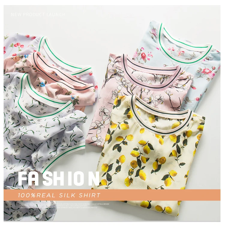 Женская шелковая рубашка, 100% шелк, креп, цветочный принт, футболка с короткими рукавами, шелковый топ, 2022, новая летняя рубашка с принтом
