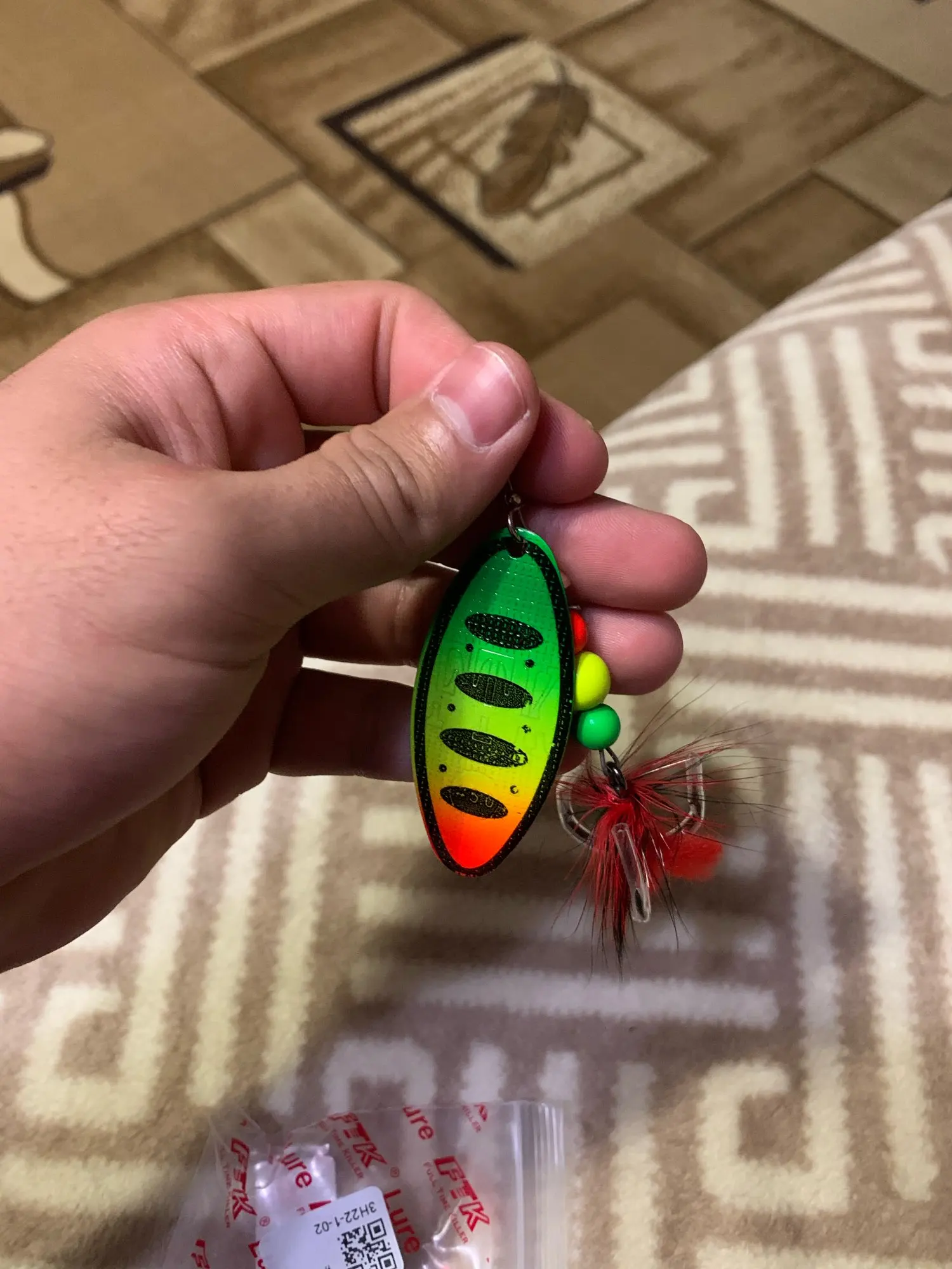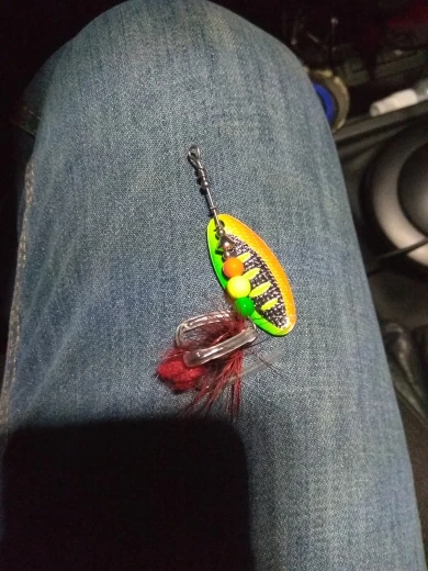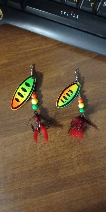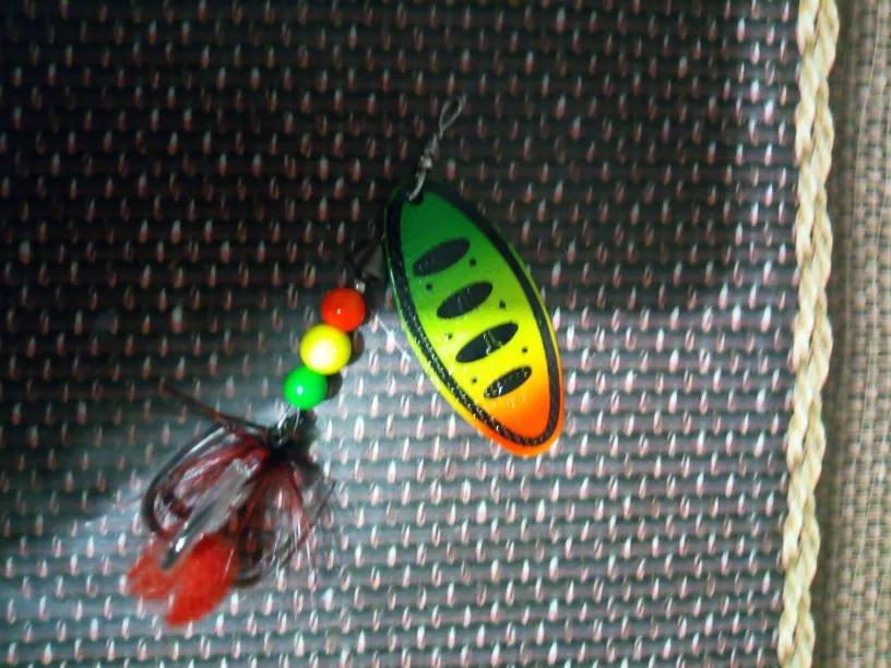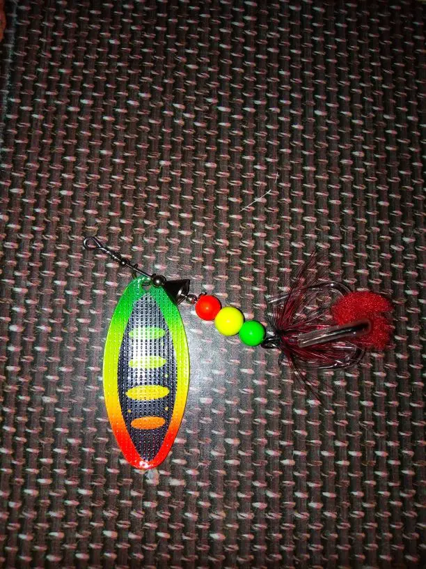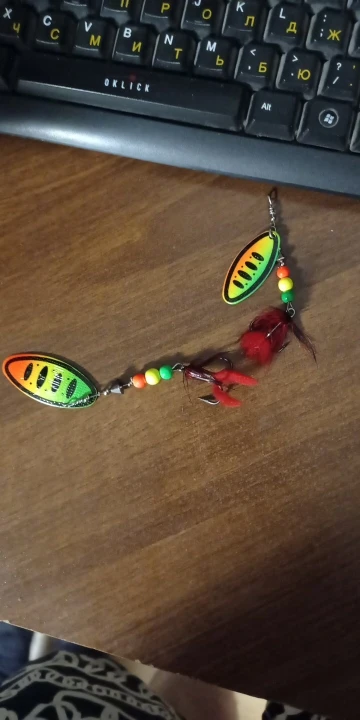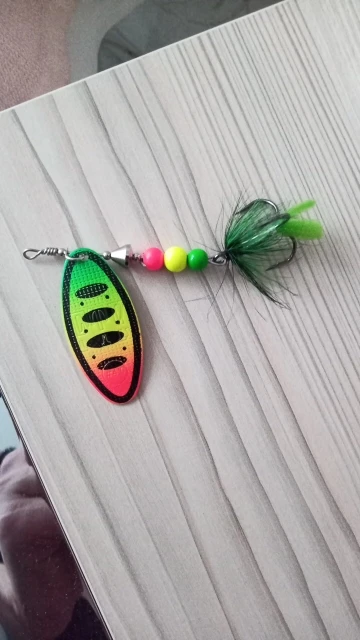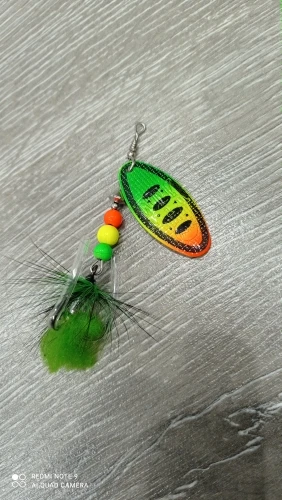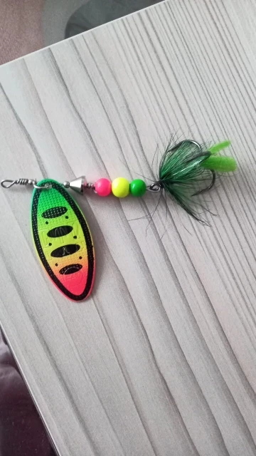 Рассчитывал на красное оперение блесны, а получил зеленое как то для ловли хищной рыбы (щуки,судака,окуня) не подходит. I counted on the red plumage of the spinner, but I got a green one as it is not suitable for catching predatory fish (pike,walleye,perch).